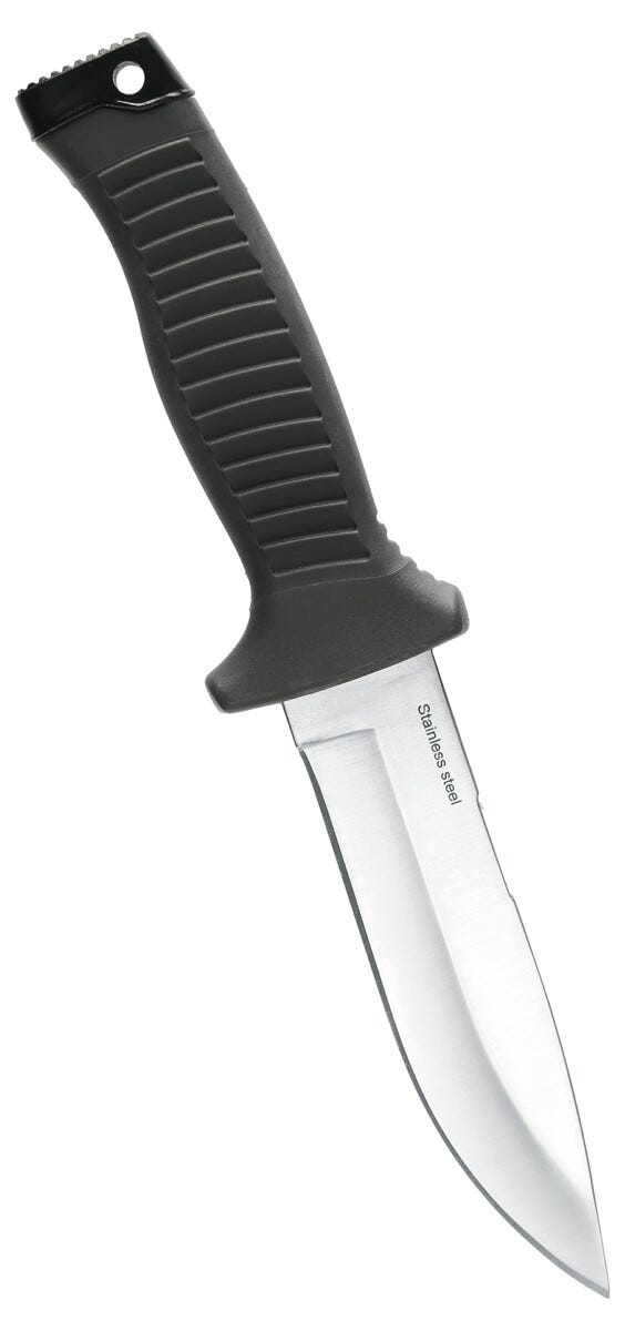 • Tåligt knivblad av rostfritt stål och knivslida i PP-plast.