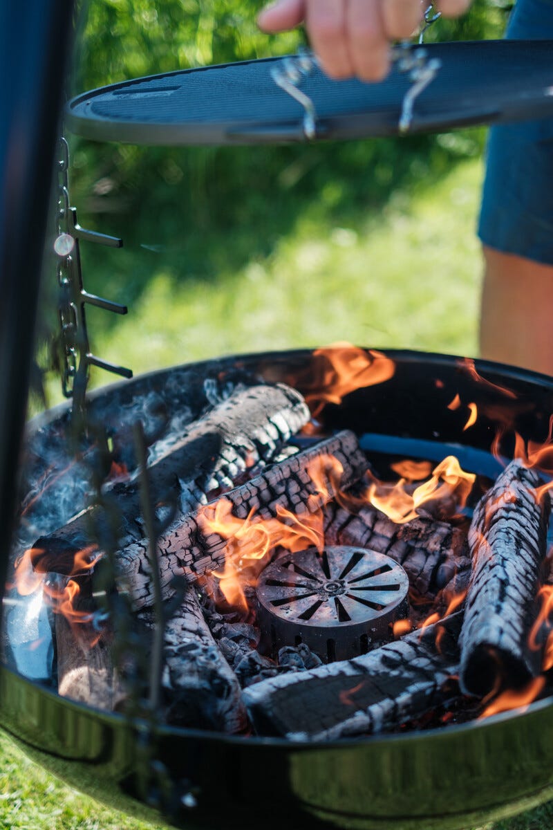 • Rostfritt grillgaller, upphängningskedjor och glöduppsamlare ingår.