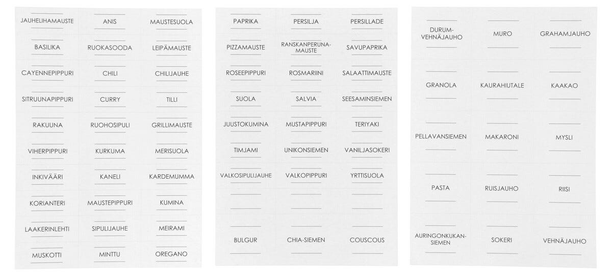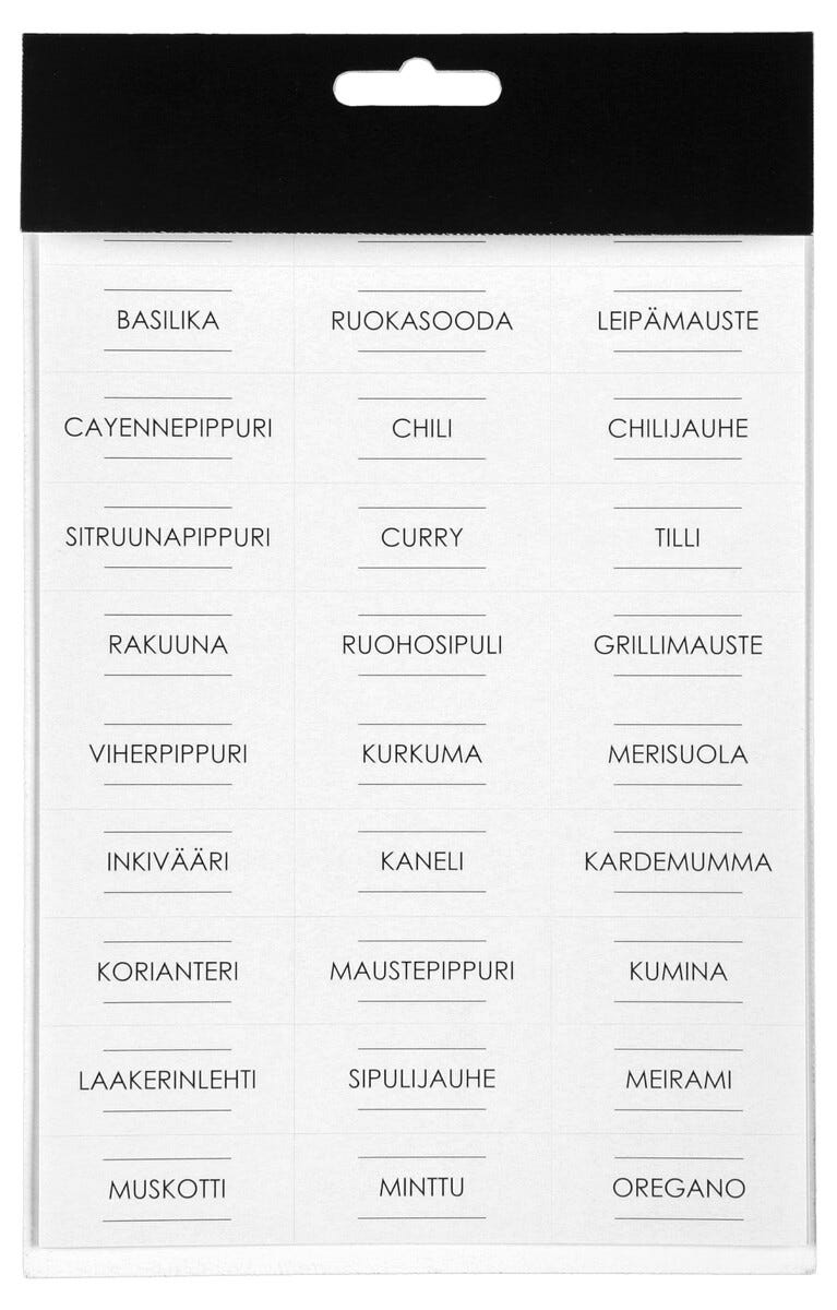 Etiketit purkkeihin mausteille ja kuiva-aineille