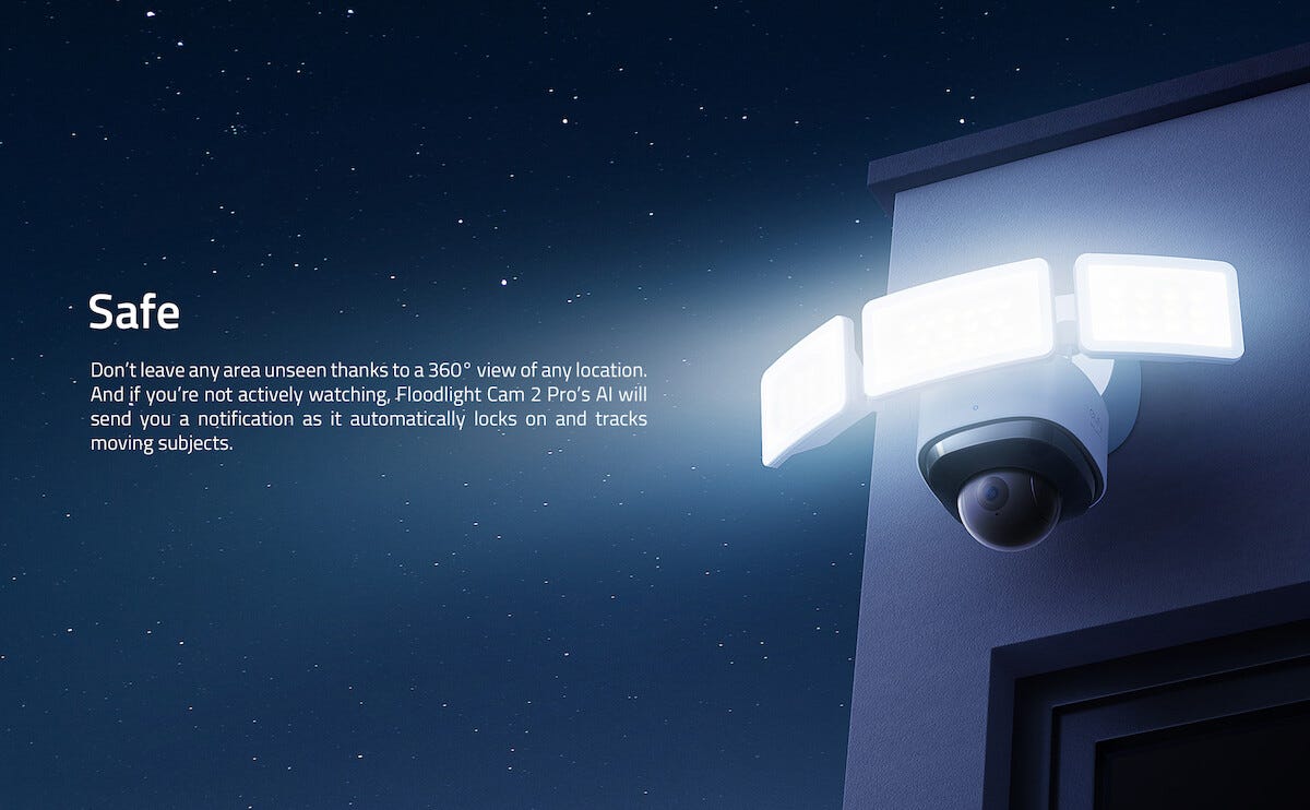 Eufy Floodlight Cam 2K Pro Valvontakamera, 3 valonheitintä