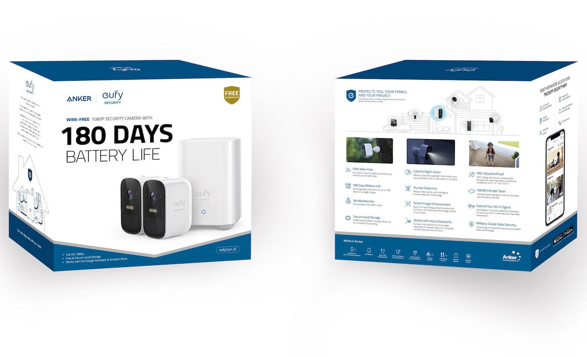 • EufyCam 2C 2+1 kit – 2 säänkestävää kameraa, joissa jopa 6 kuukauden akunkesto.