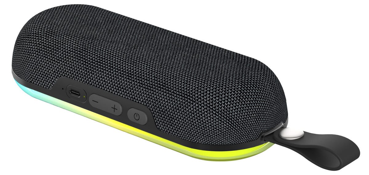 • Pieni, vedenkestävä kaiutin, joka nostaa tunnelmaa äänellä ja valolla.