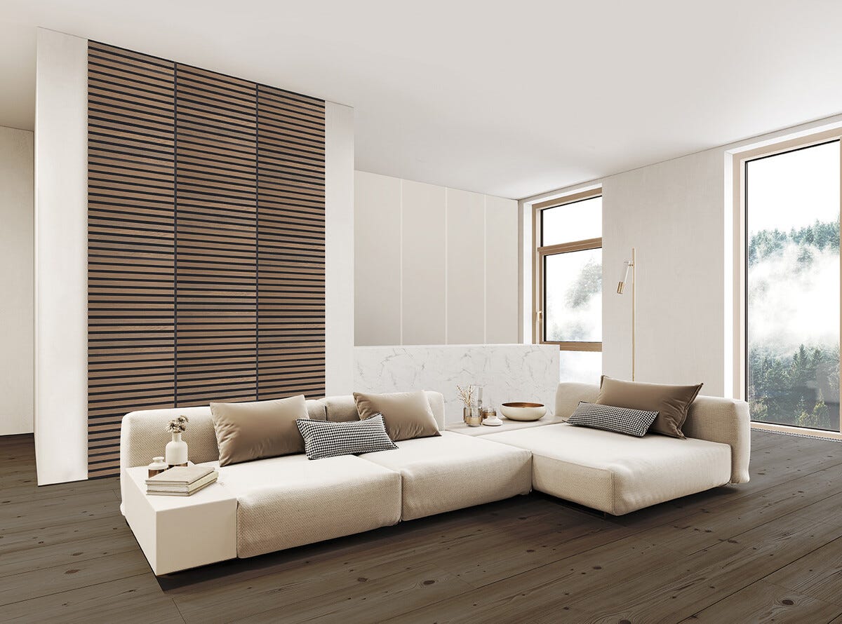 • Fibrotech Square Premium akustikpanel – ljuddämpande väggpaneler av äkta träfaner på MDF.