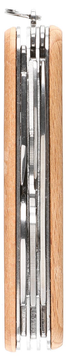 • 10 työkalua ruostumatonta terästä ja kahva FSC®-merkittyä puuta.