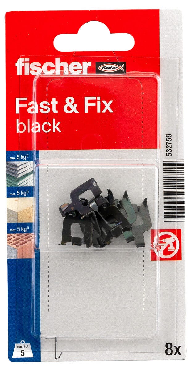 Krok Fischer Fast & Fix -koukku lukittuu innovatiivisen rakenteen ansiosta seinään ja kantaa enintään 5 kg:n painon. Jos kahta koukkua käytetään yhdessä, kantokyky on enintään 10 kg.
