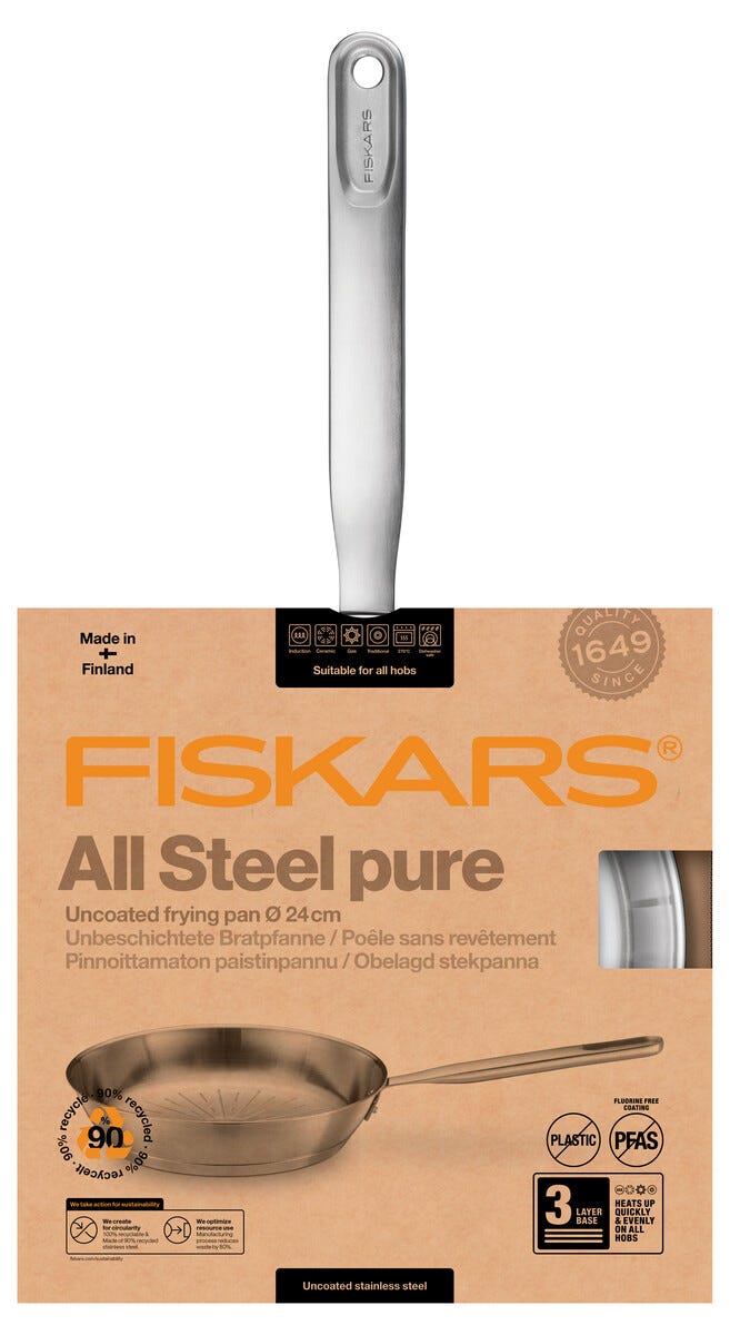 • Fiskars stekpanna All Steel Pure 24 cm – av 90 % återvunnet, rostfritt stål.