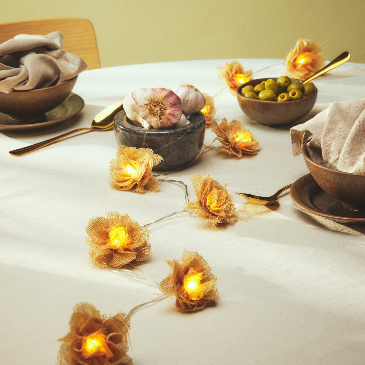 • Blomslinga i juteoptik – använd som bordsdekoration, på fönsterbänken m.m.