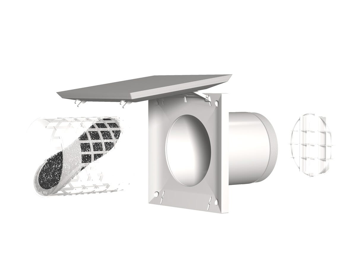 • Friskluftsventil med inbyggt filter och stormsäkring för energieffektiv ventilation.