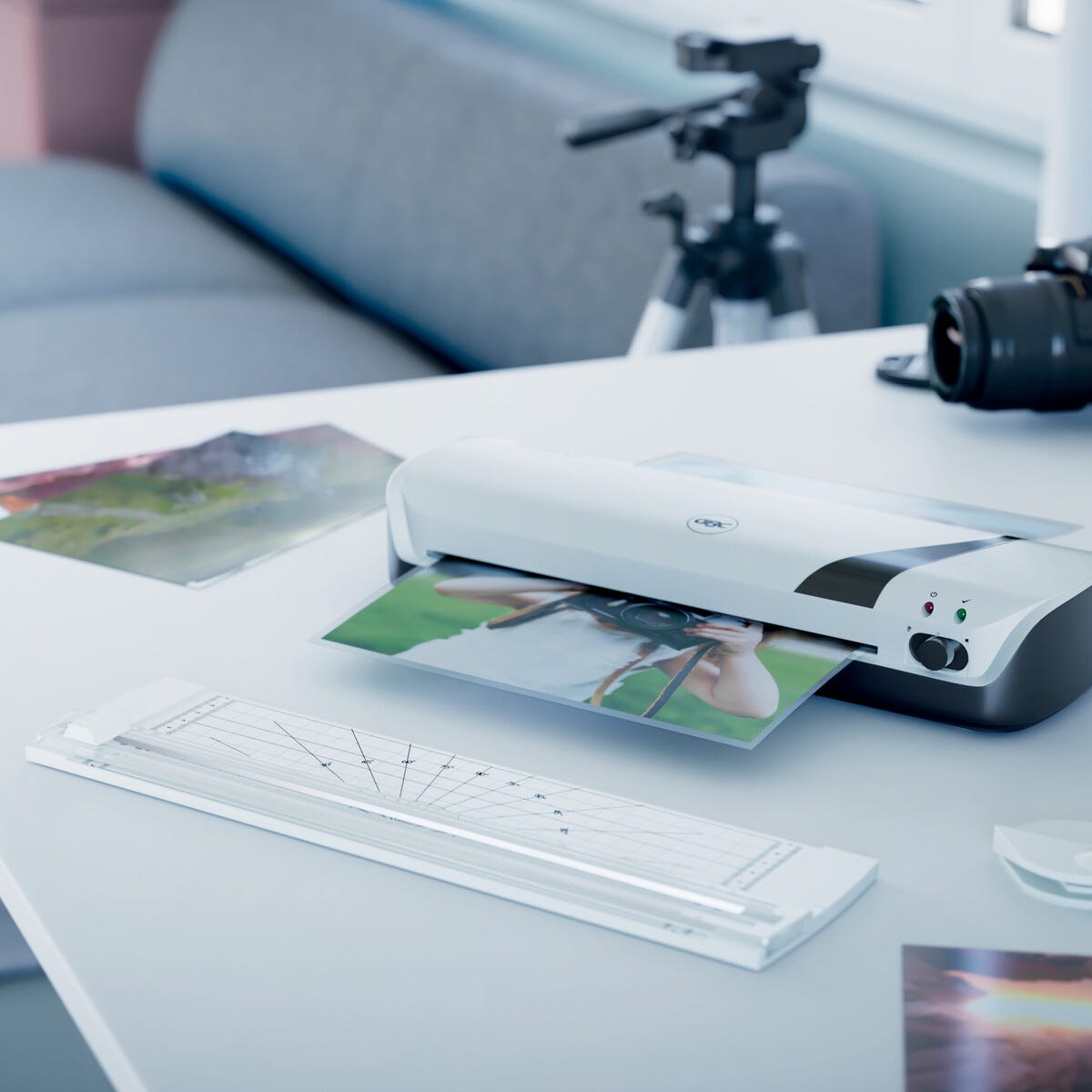 • Allt du behöver för att laminera – laminator, skärmaskin, hörnrundare och fickor.