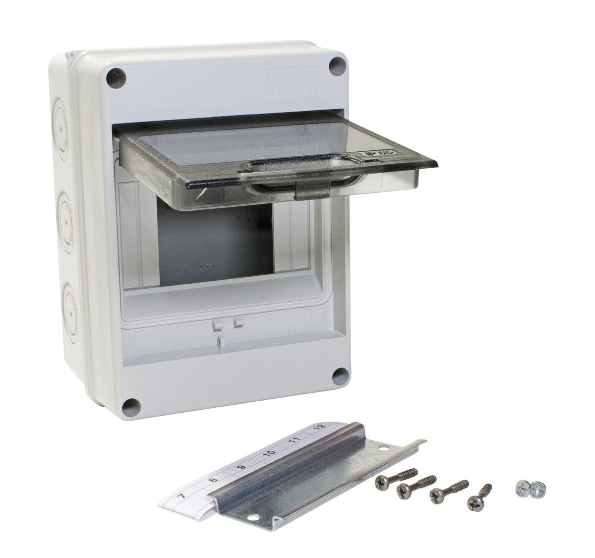 • Vesitiivis kotelo ulkoasennuksiin – suojaa sulakkeet, releet ja kytkimet.