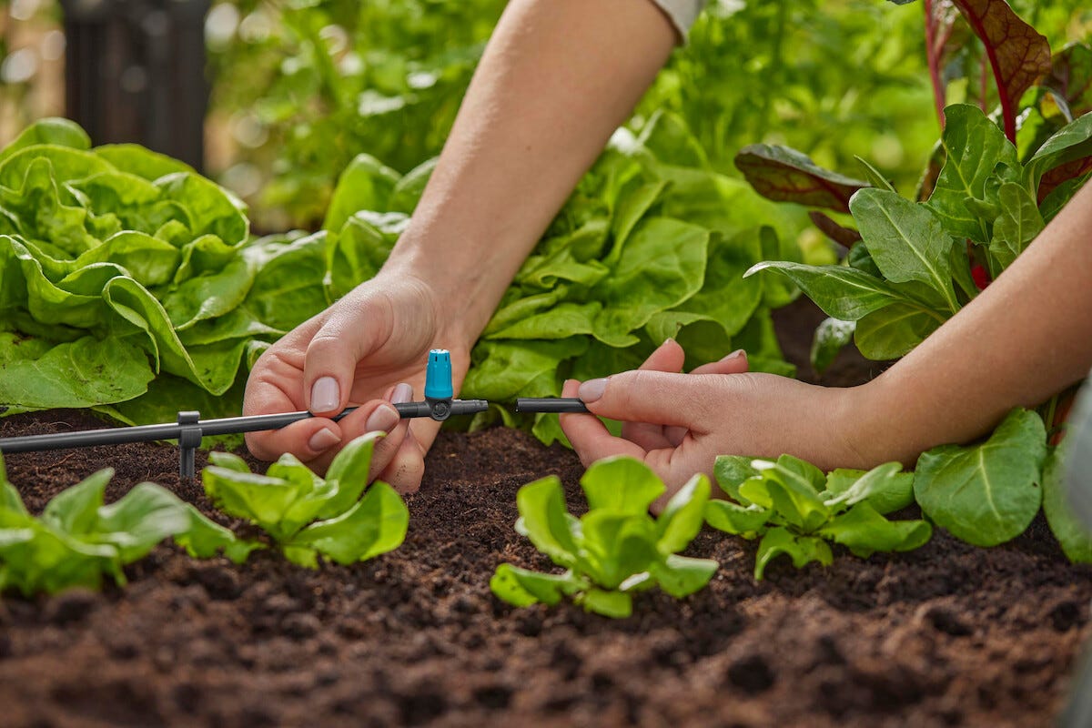 • Gardena Micro-Drip -eivitippusuutin – kiinnitä helposti napsauttamalla.
