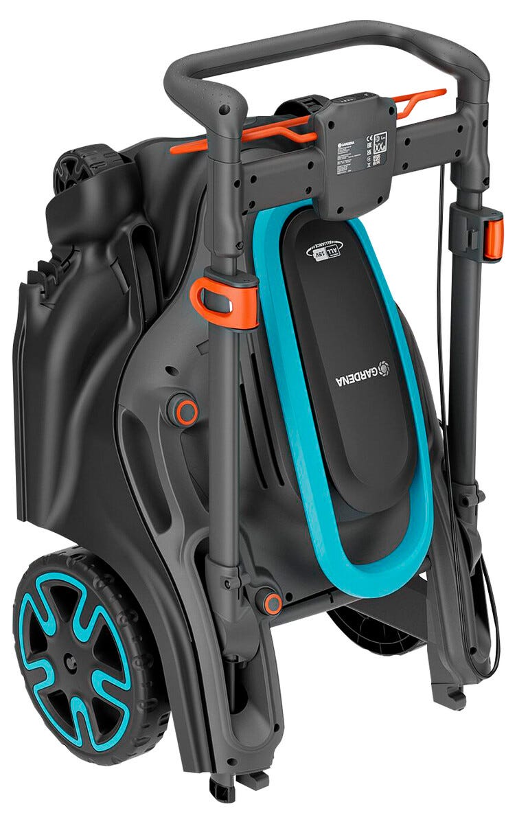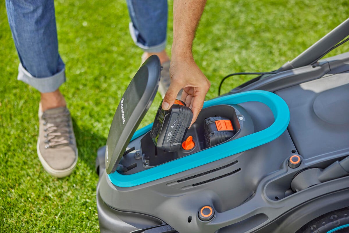 • Gardena PowerMax Duo 46/36 V Set 4.0 -ruohonleikkuri – mukana 2 akkua ja 1 laturi.
