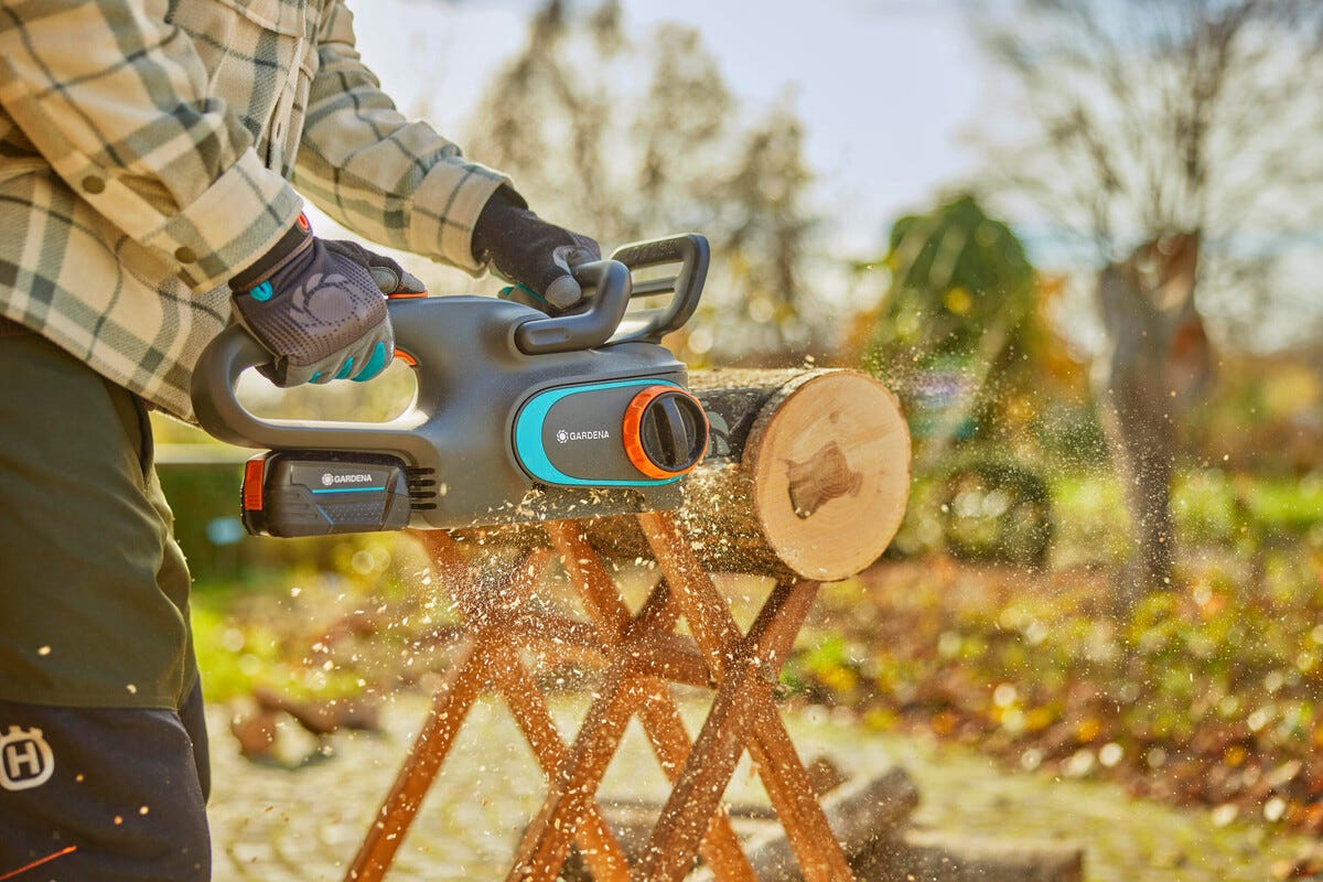 • Gardena PowerSaw -akkusaha – puunhoitoon ja polttopuiden tekemiseen.