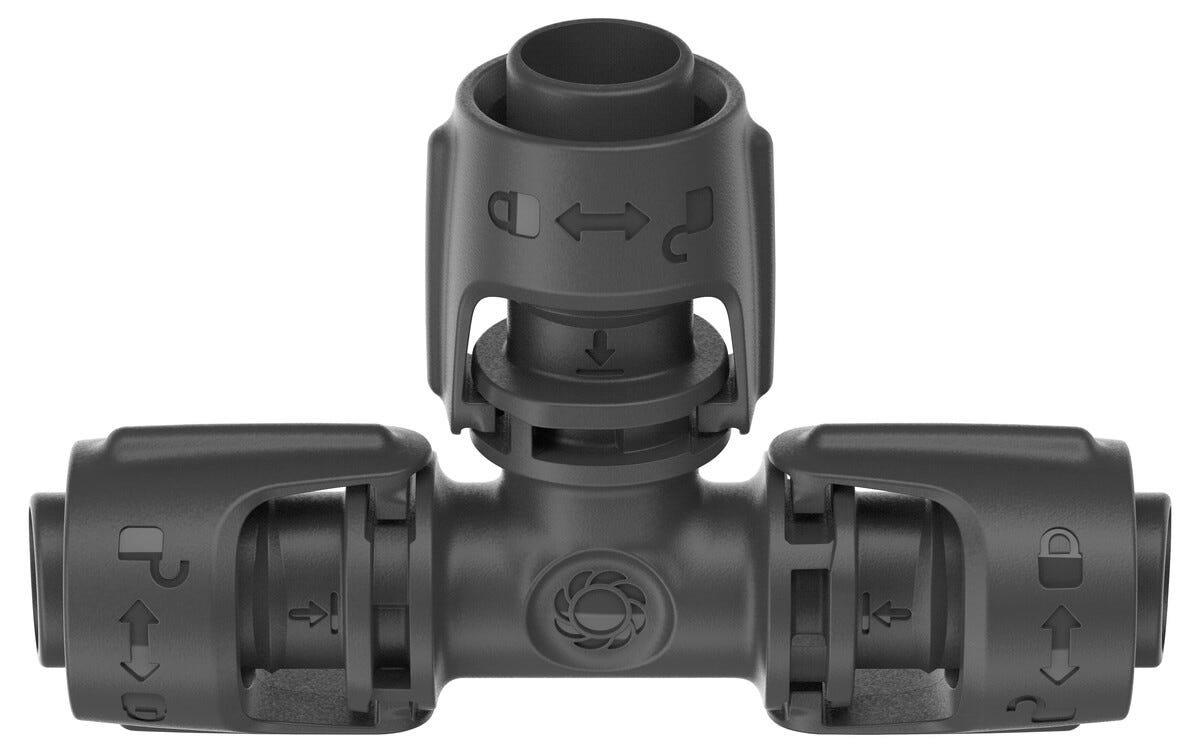 • Gardena T-koppling 13 mm, 1/2 tum, 2-pack – monteras med ett klick.