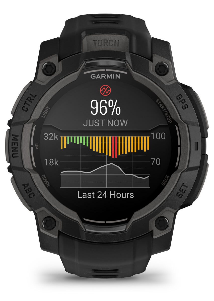 • Kestävä AMOLED-kello, jossa monikaistainen GPS ja kiinteä taskulamppu.