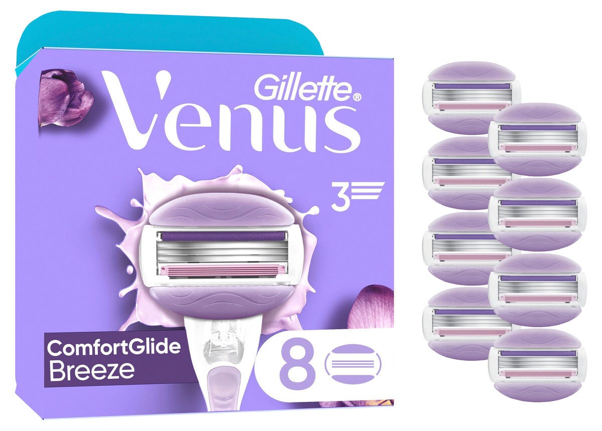• Gillette Venus Comfortglide Breeze -vaihtoterä, jossa sisäänrakennettu SkinCushion-voiteluliuska.