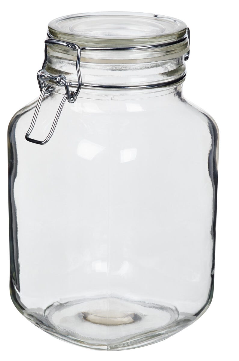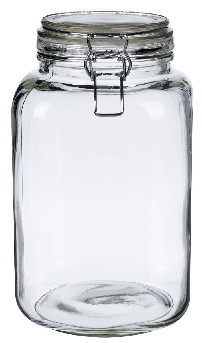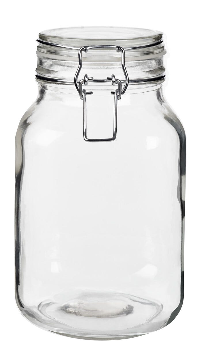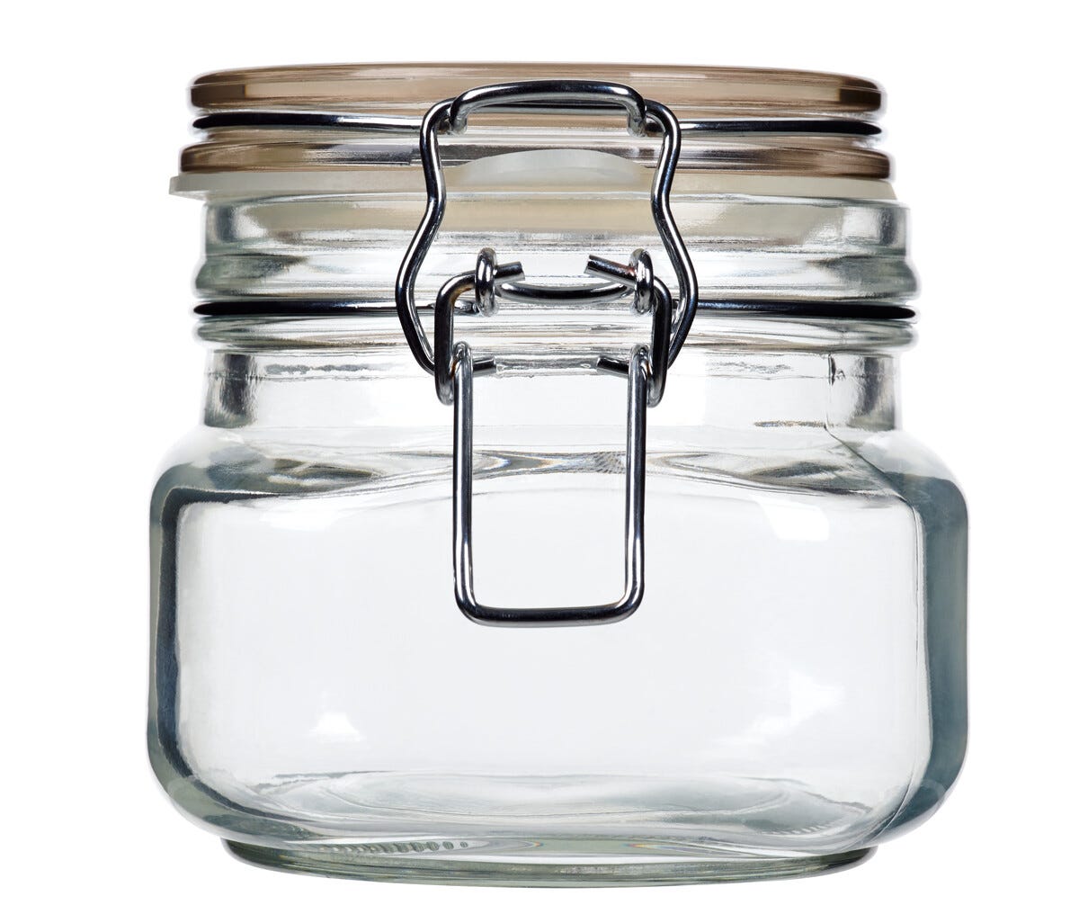 • Glasburk med fyrkantig form och snäpplock för förvaring i kyl och skafferi.