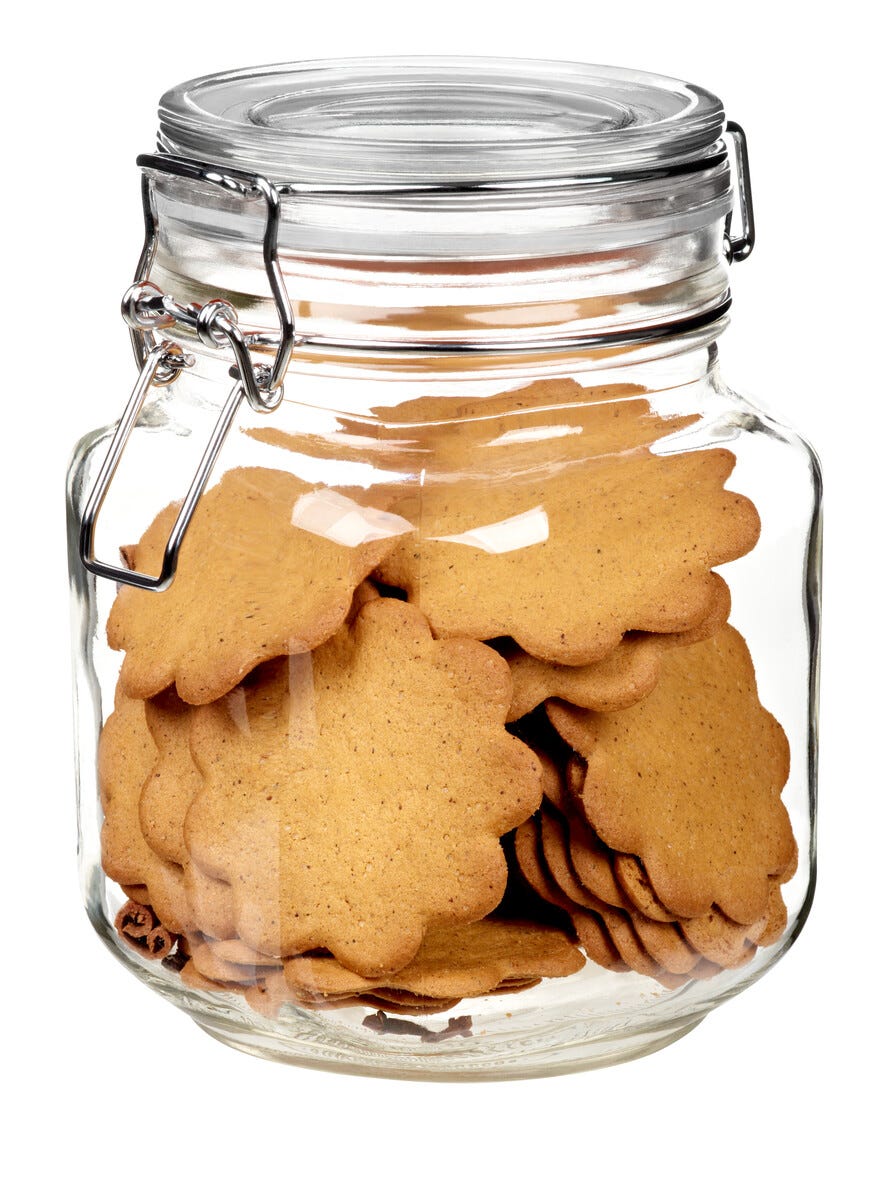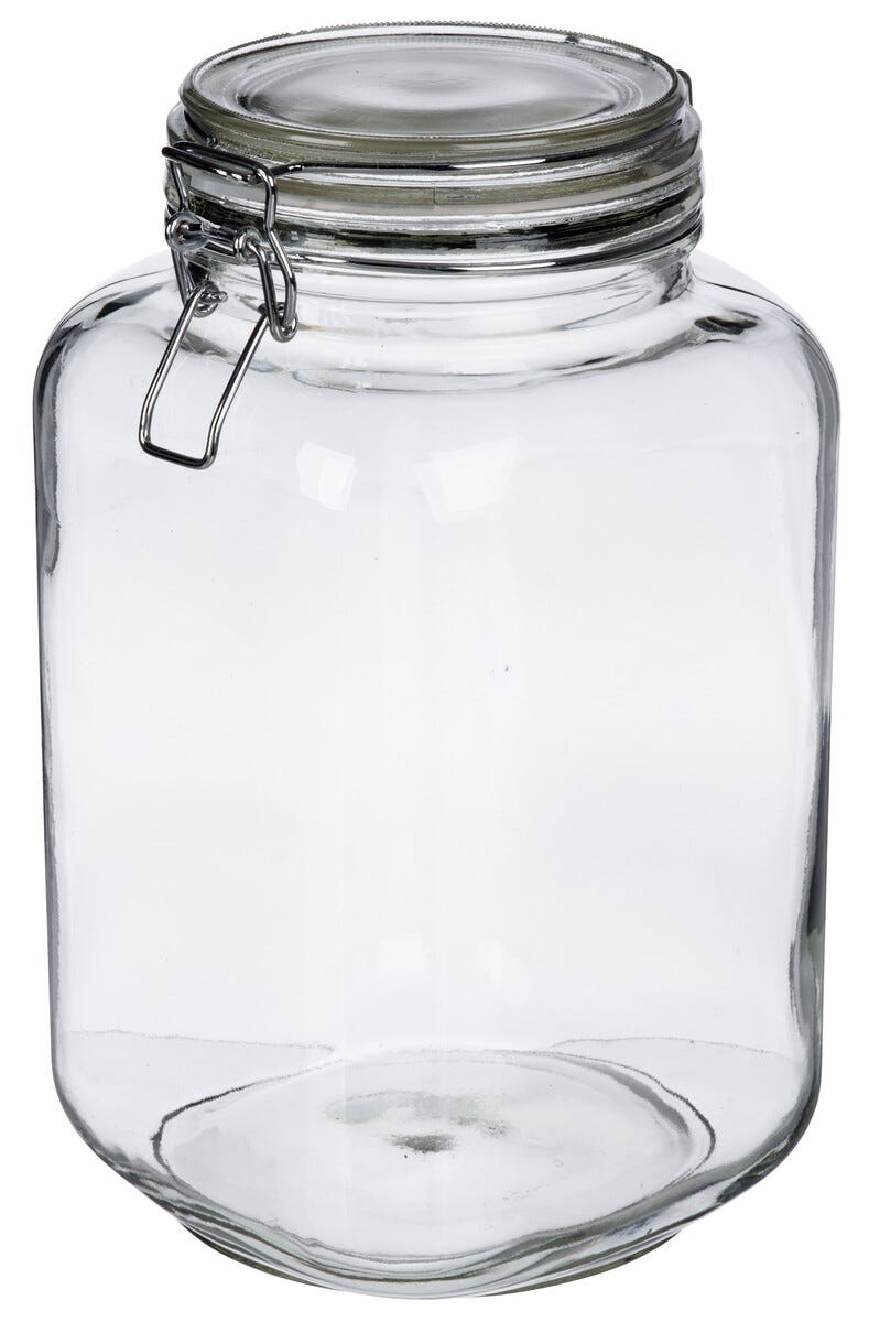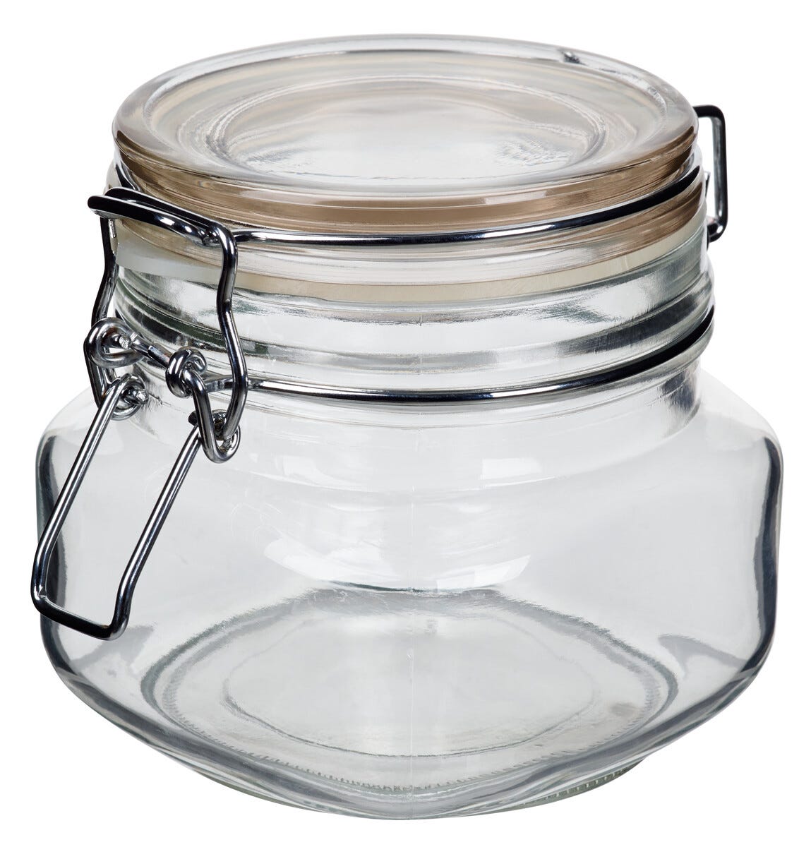 • Glasburk med fyrkantig form och snäpplock för förvaring i kyl och skafferi.