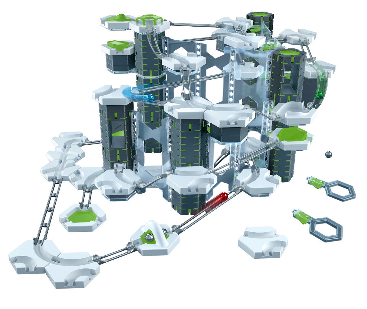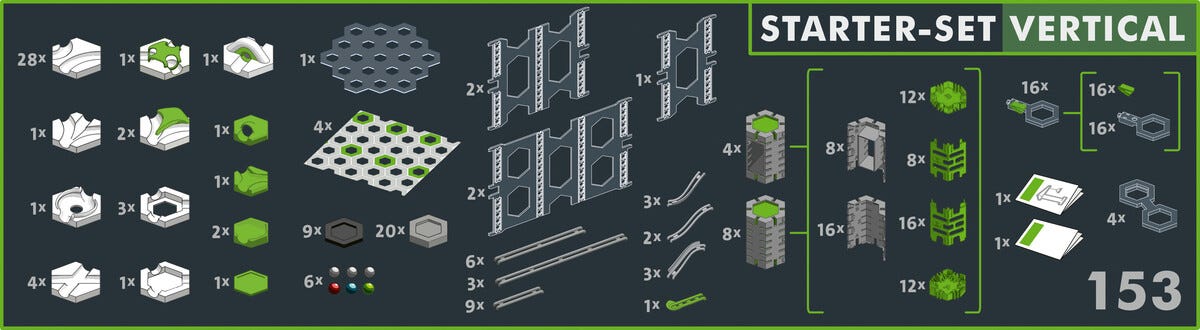 • Bygg egna kulbanesystem på höjden – komplett startkit med 153 delar.