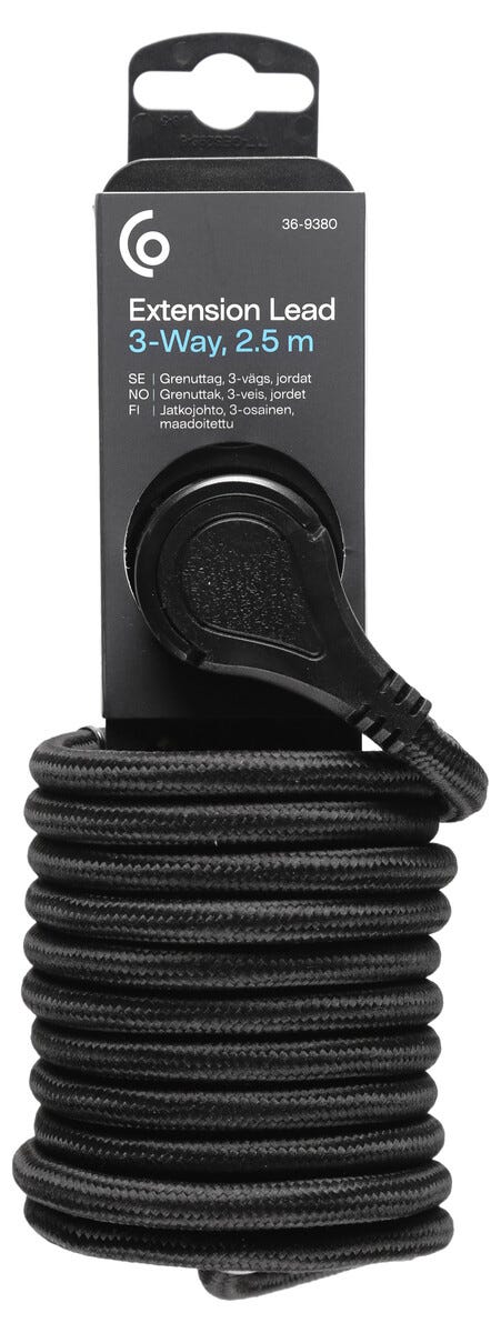 • 3-osainen jatkojohto sisäkäyttöön – virtakytkin ja 2,5 metrin johto.