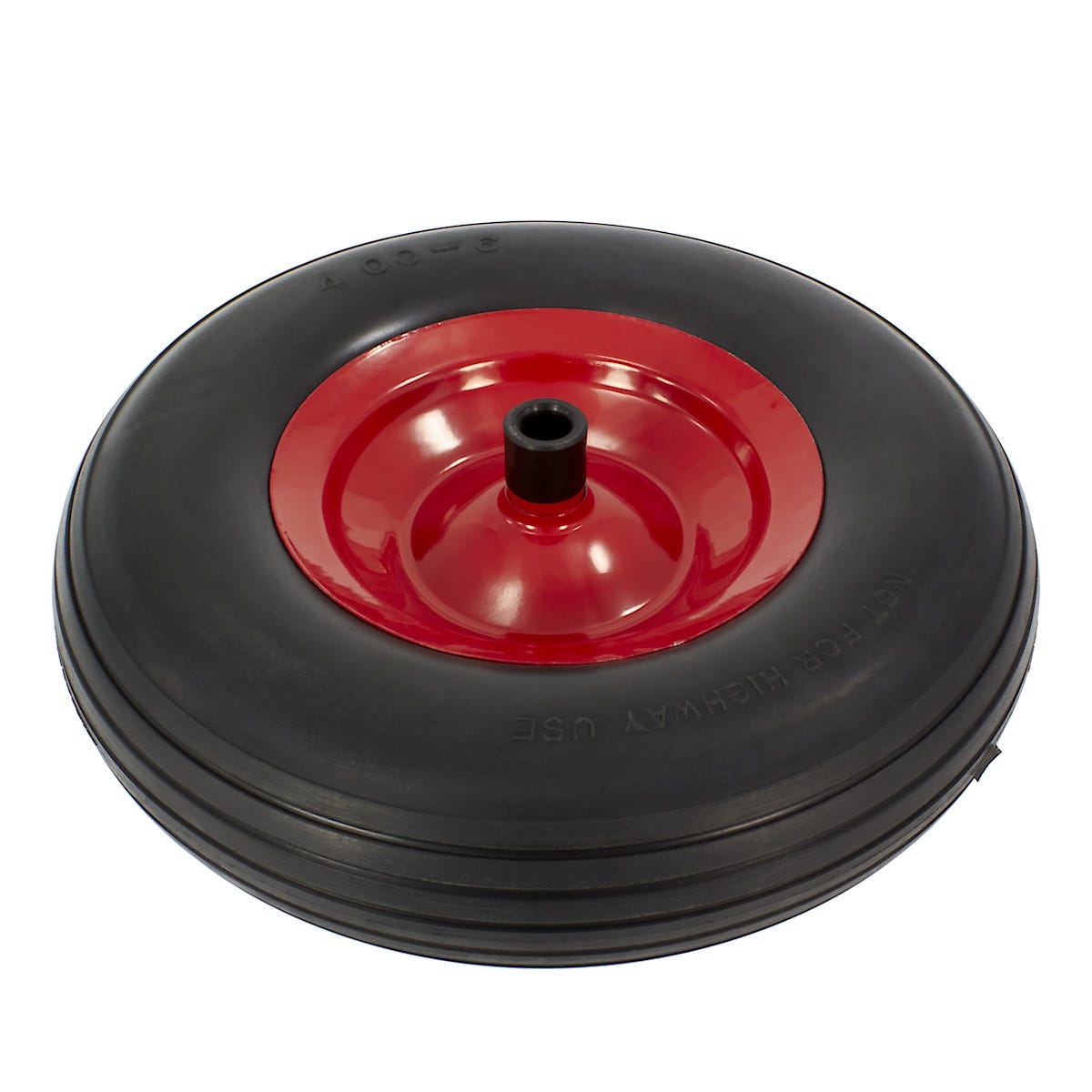 Puhkeamaton pyörä peltivanteella ja liukulaakereilla. Kottikärryihin Ekeby 21 (1033). Akselin reikä: sisähalk. 16,6 mm. Navan pituus: 97 mm.