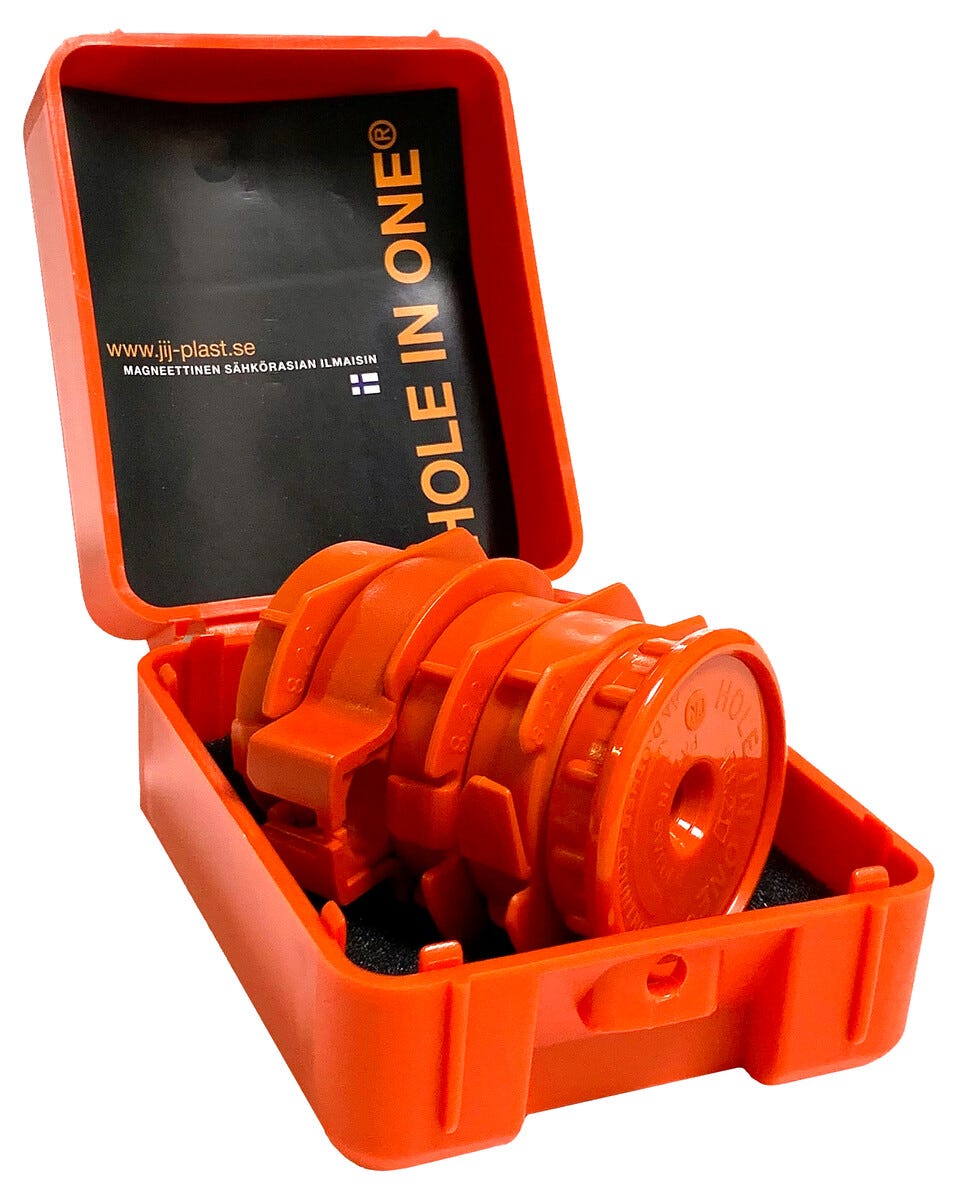 • Hole-In-One – magneettinen sähkörasian hakujärjestelmä, helppo, nopea ja tarkka.