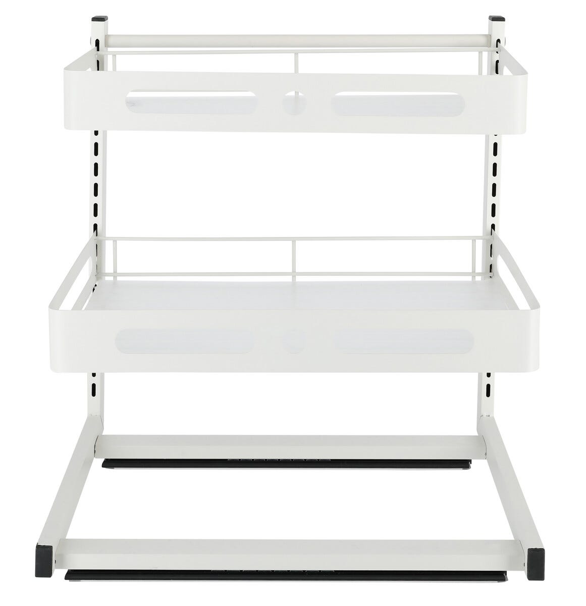• Pieni ulosvedettävä kaappihyllykkö, jossa kaksi tasoa – järjestä ahtaat tilat helposti.
