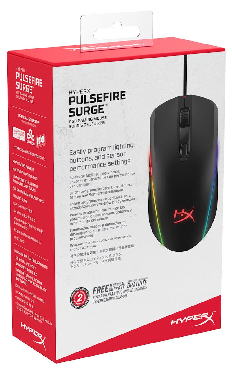 • HyperX Pulsefire Surge – pelihiiri, jossa 360° RGB-efektit.