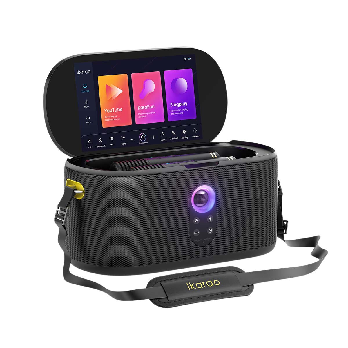 • Ikarao Shell S1 bärbar karaokemaskin med stor 10,1-tums pekskärm.