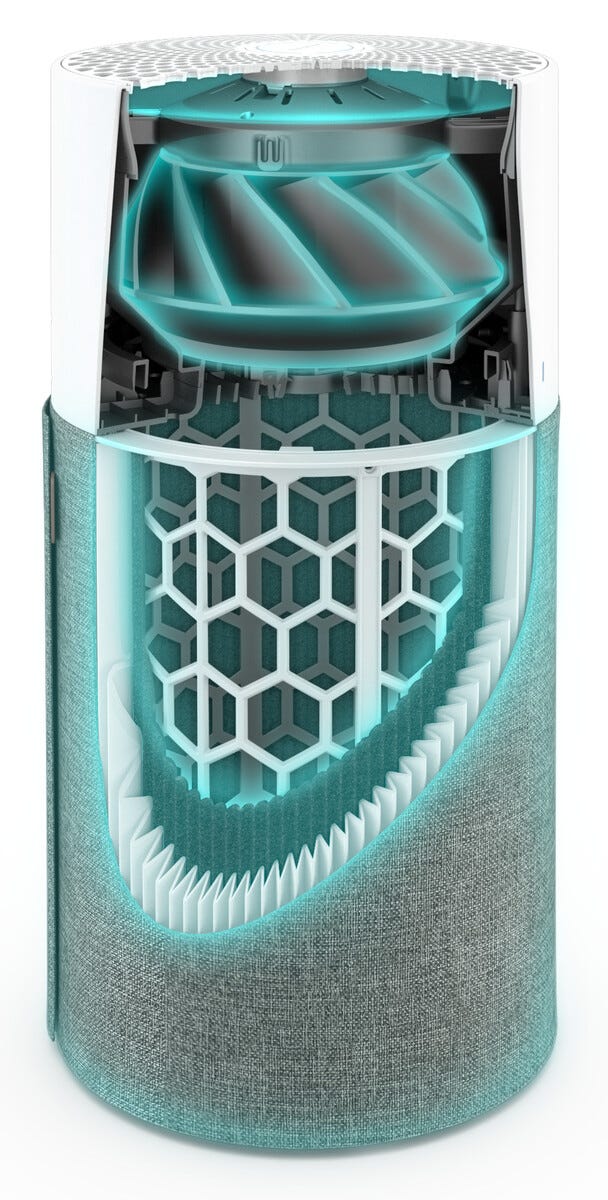 • Persoonallinen ilmanpuhdistin esisuodattimella (kolme eri väriä).