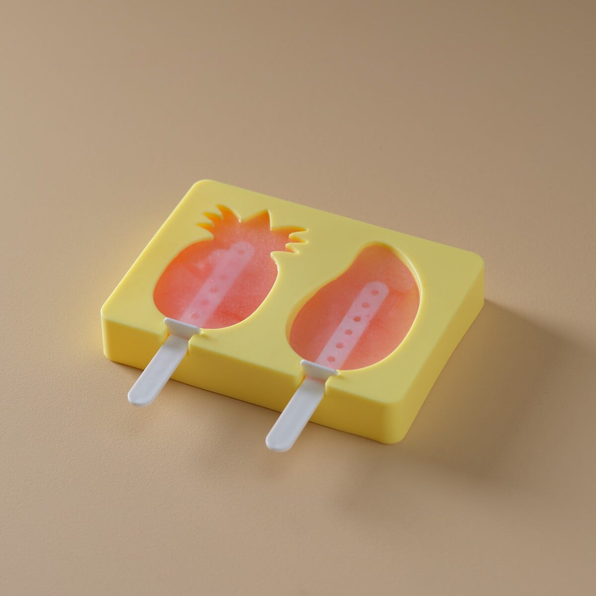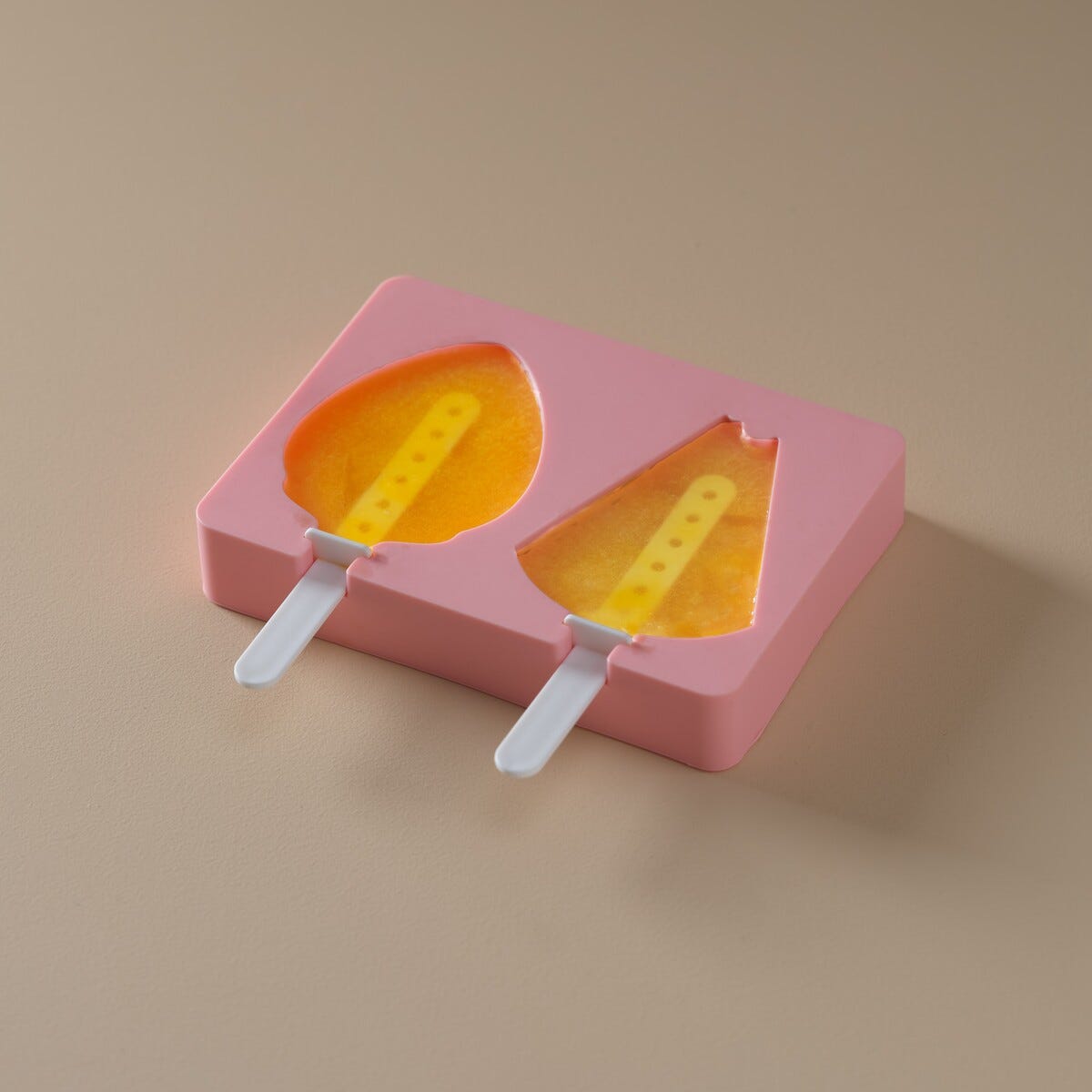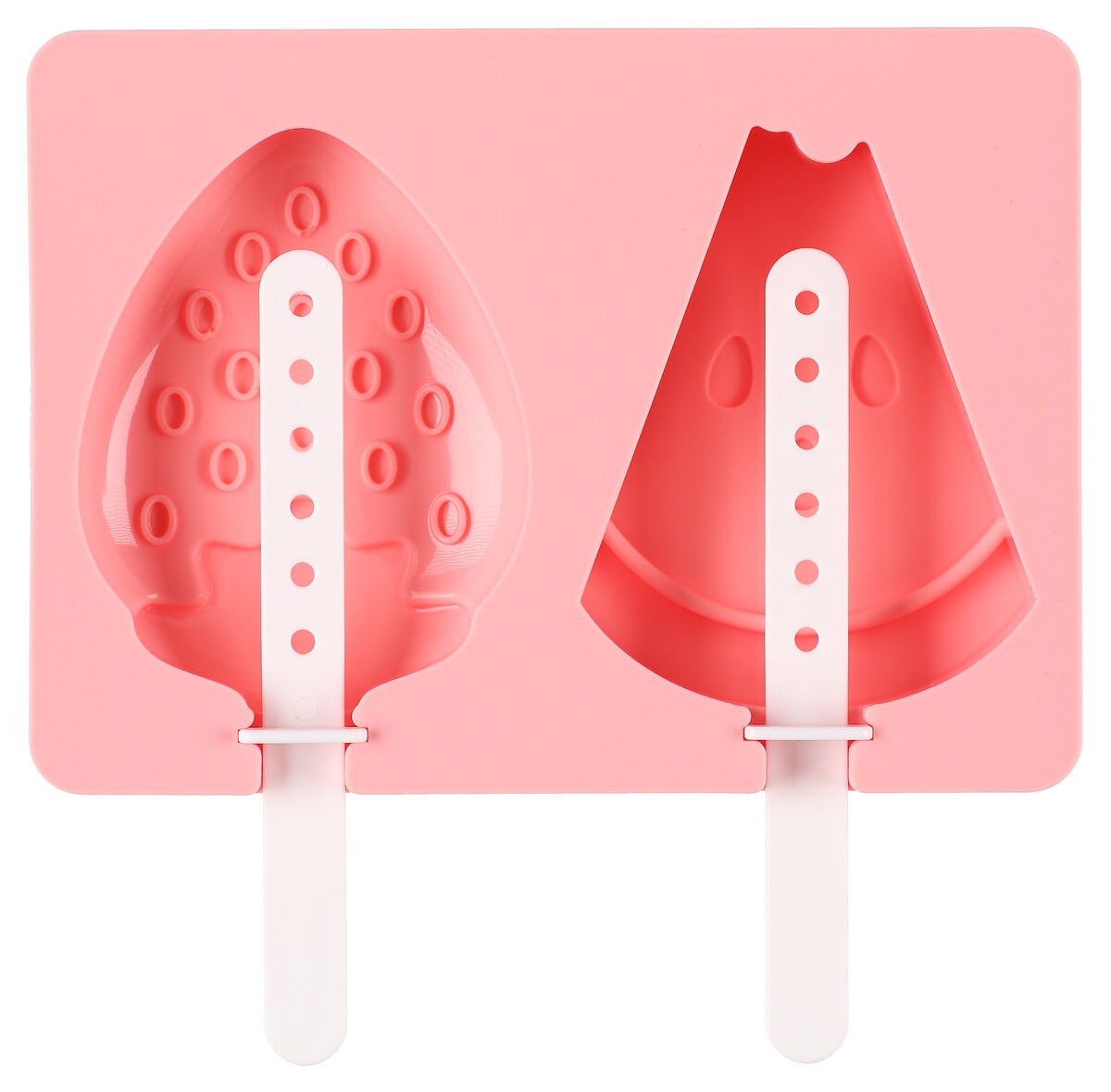 Jäätelömuotti silikonia, hedelmän muotoinen, 2 jäätelöpuikkoa