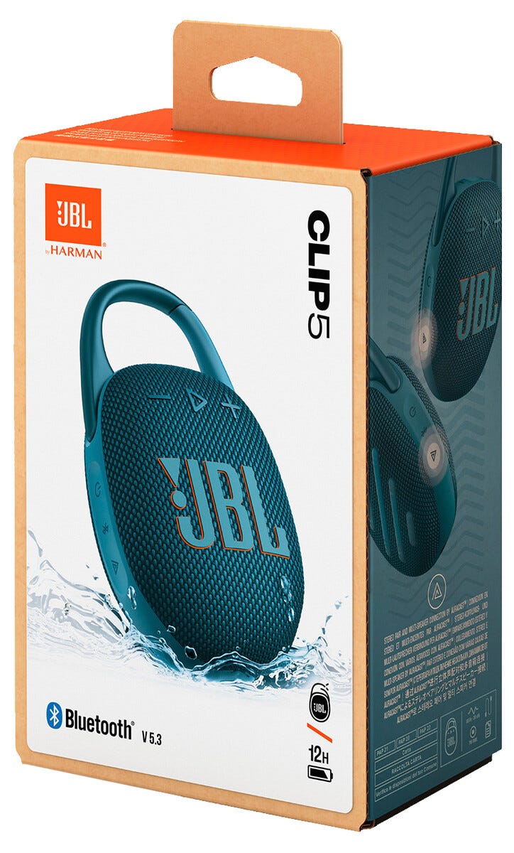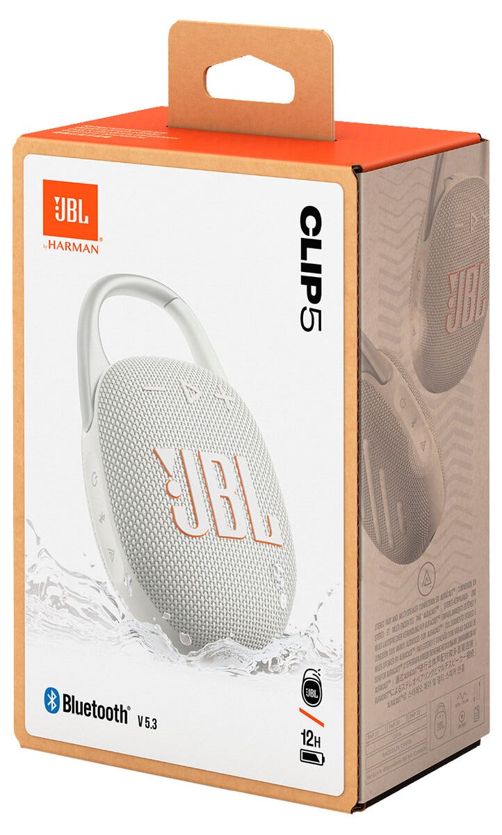• JBL Clip 5 – vesitiivis ja pölytiivis kaiutin (IP67), jossa Bluetooth 5.3.