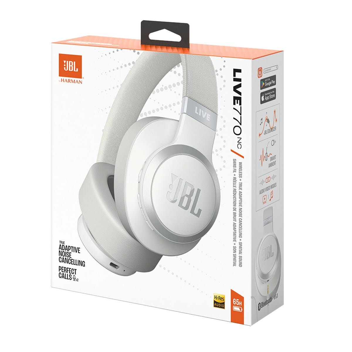 • JBL Live 770NC – kevyet, kokoontaitettavat kuulokkeet, joissa mikrofoni, ja tehokas 40 mm:n elementti.