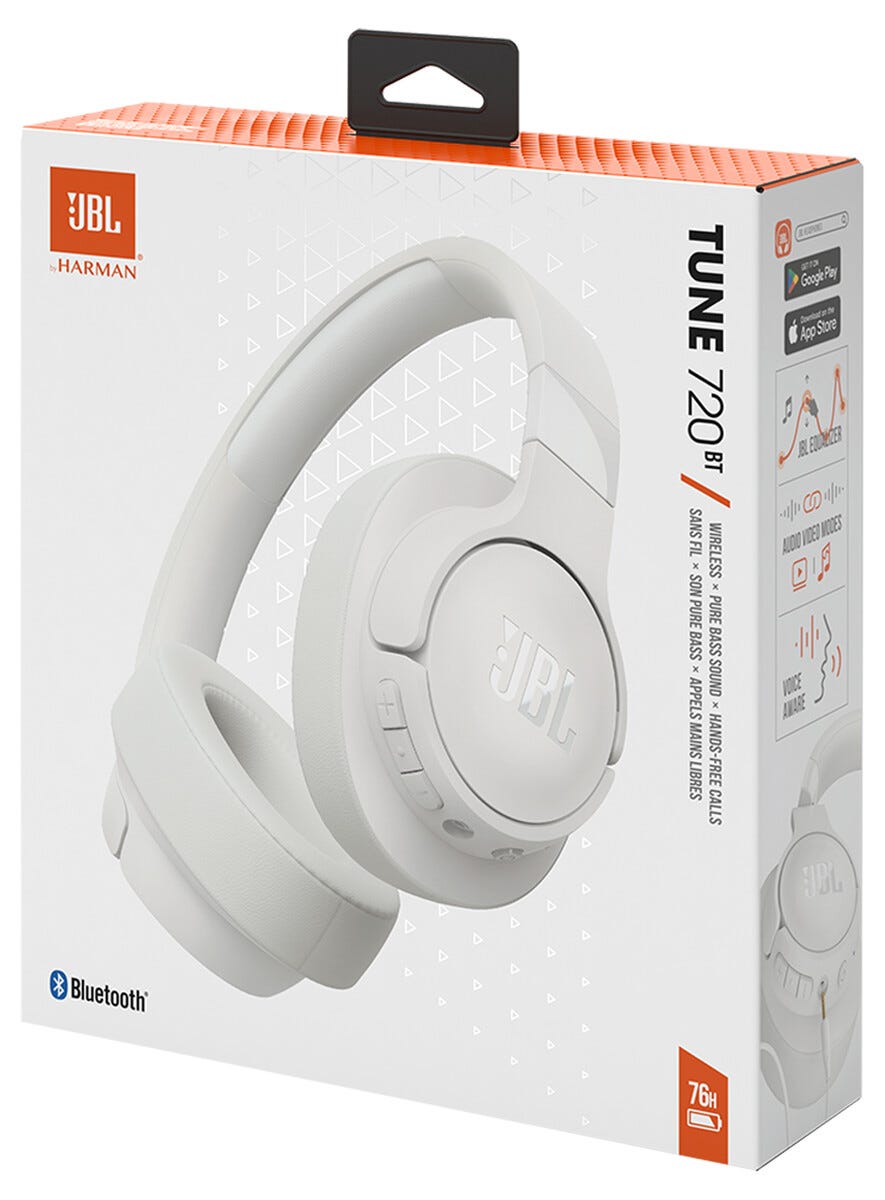 • JBL Tune 720 BT – kevyet, kokoontaitettavat kuulokkeet, joissa mikrofoni, ja tehokas 40 mm:n elementti.