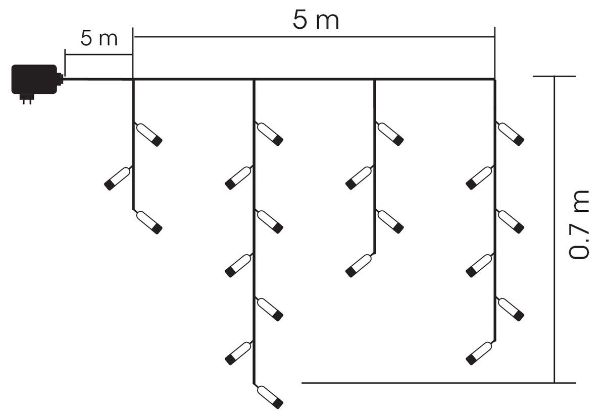 • 5 m. Koristele kimmeltävillä jääpuikoilla sisällä tai ulkona.