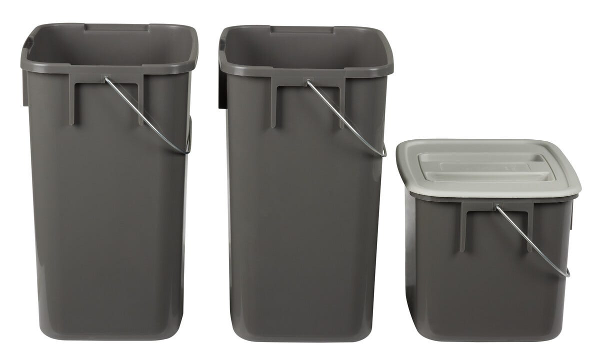 • Jätteidenlajittelusarja, jossa 3 jäteastiaa, kahta eri kokoa – helpottaa lajittelua.