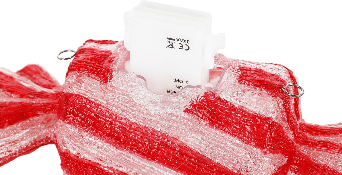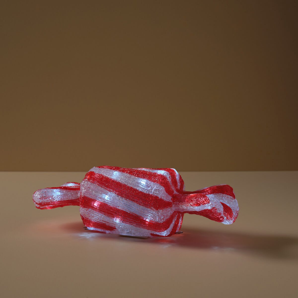 • Lysande juldekoration i form av en stor karamell – kan läggas eller hängas.