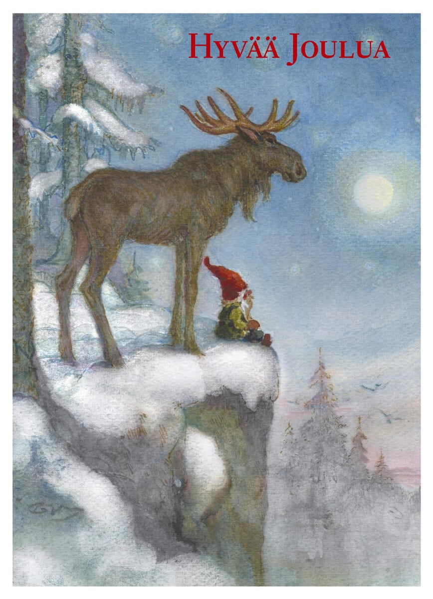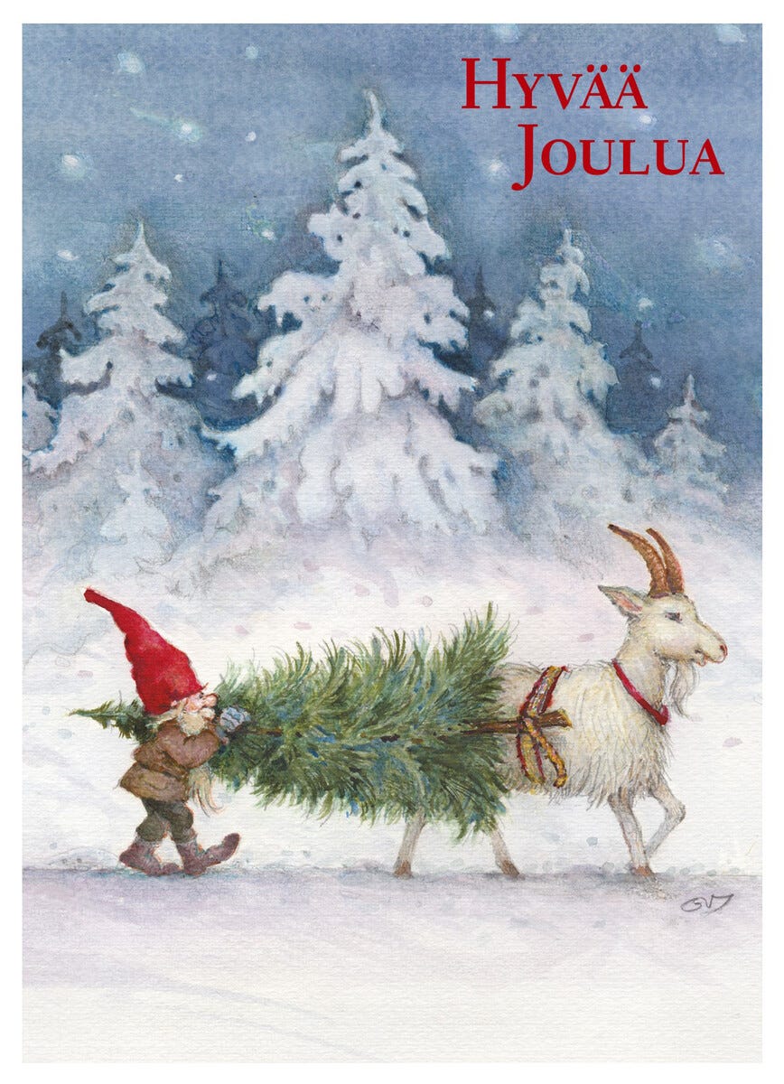 • Kuva-aiheina joulupukki, joulutonttuja, lunta ja lahjapaketteja.