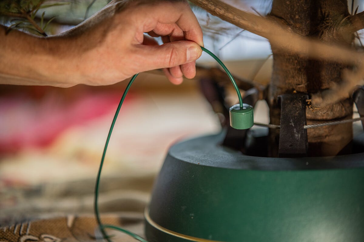• Aseta anturi joulukuusenjalkaan ja ripusta vahti kuusen oksalle.