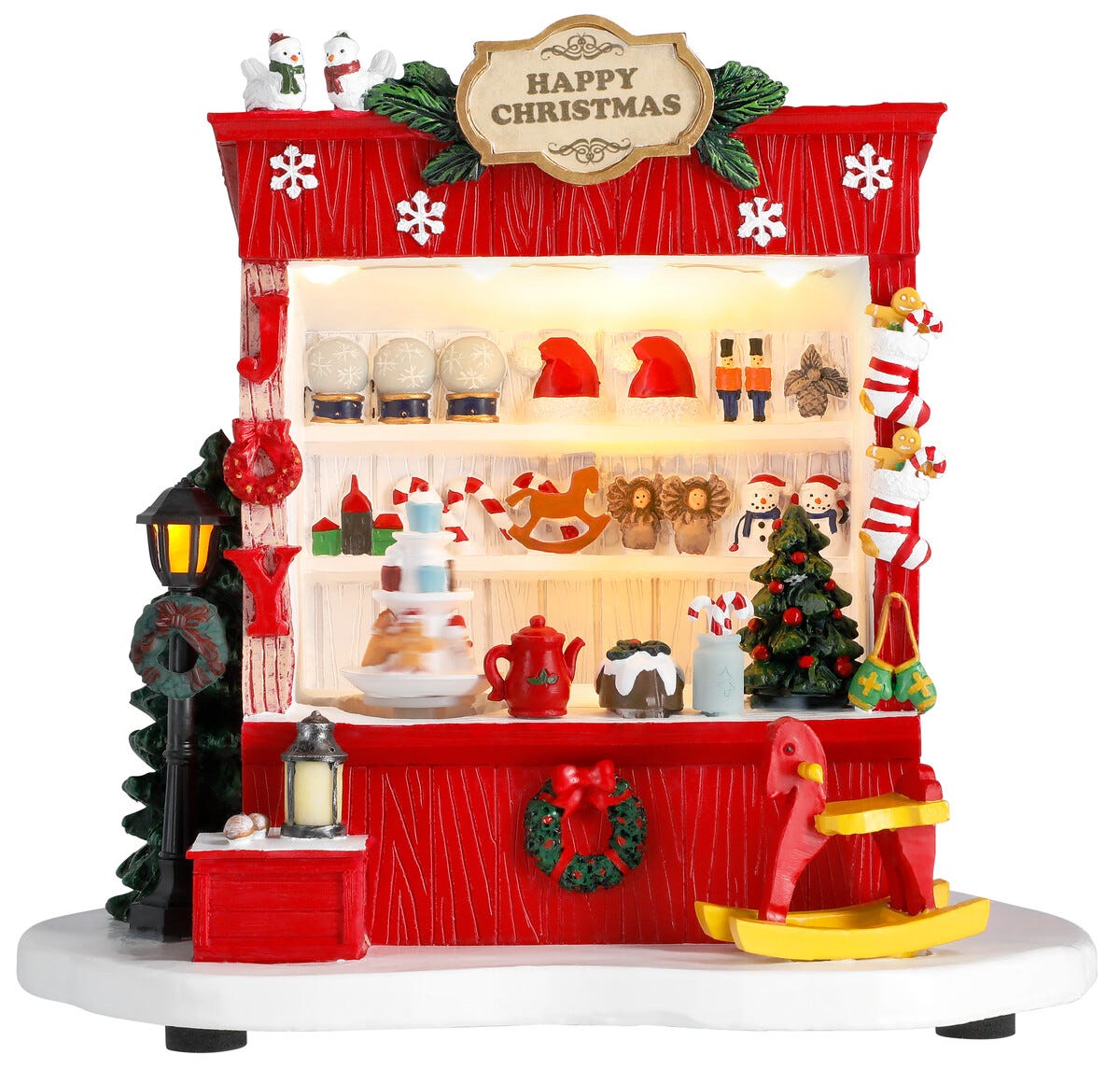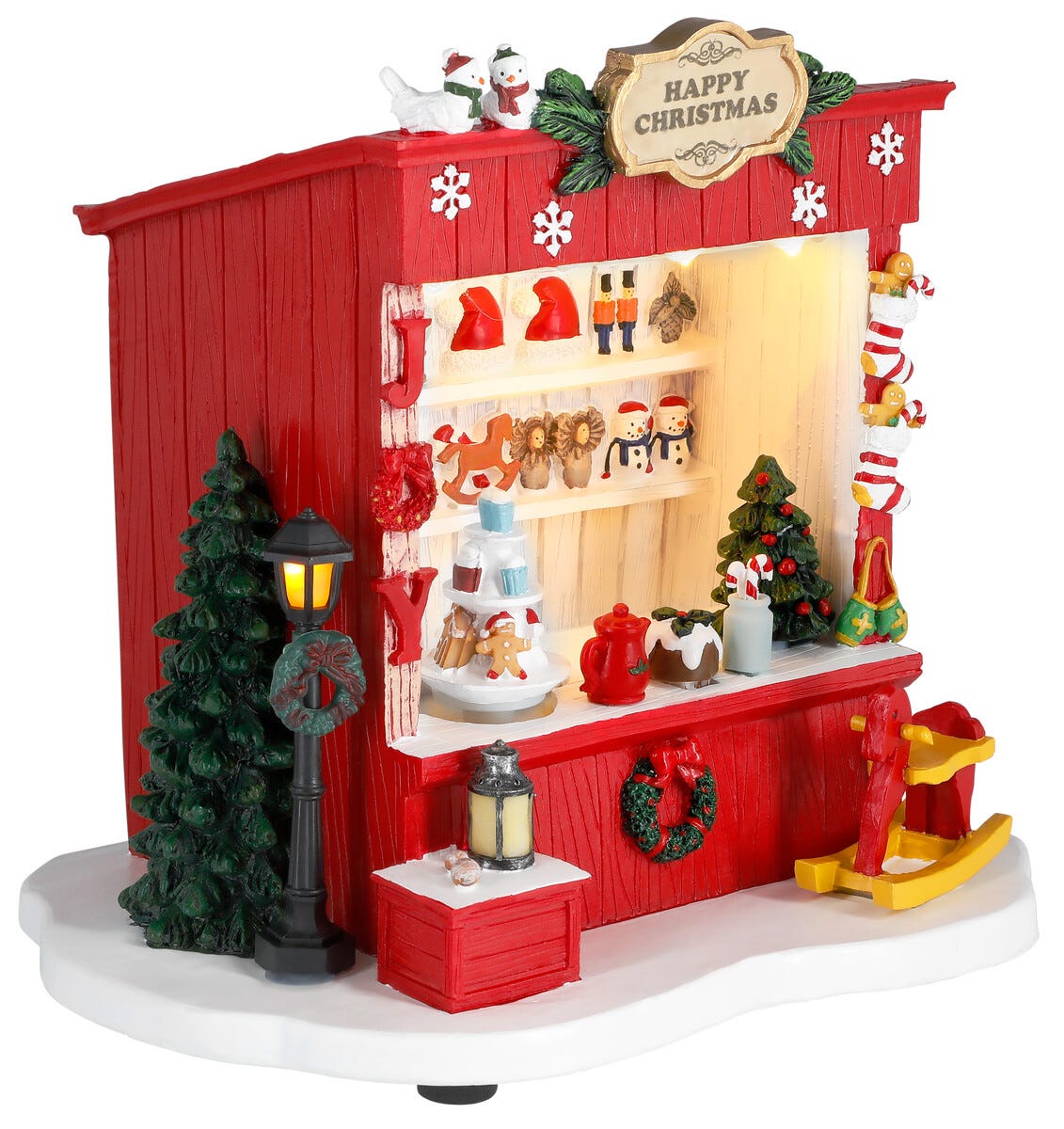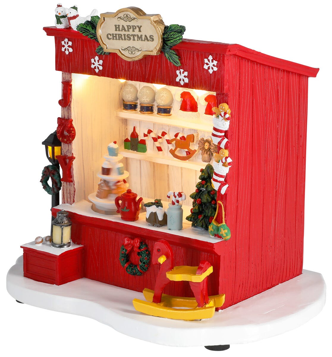 Joulukylä kioski, valot ja musiikki