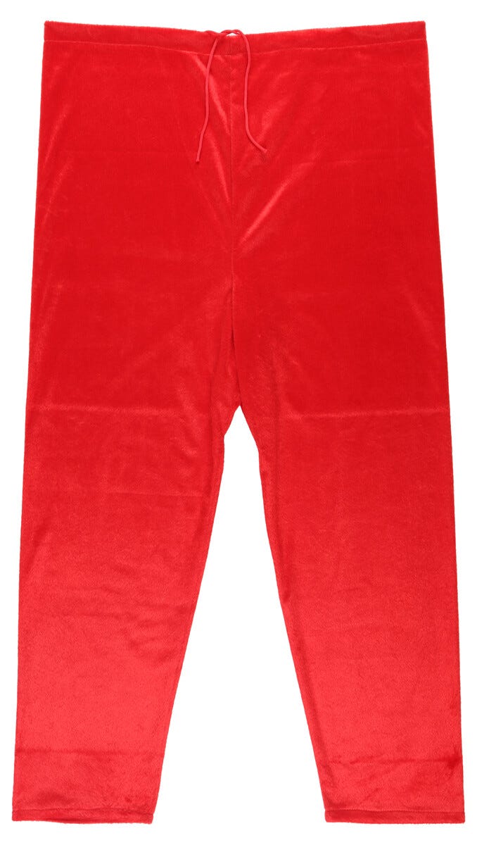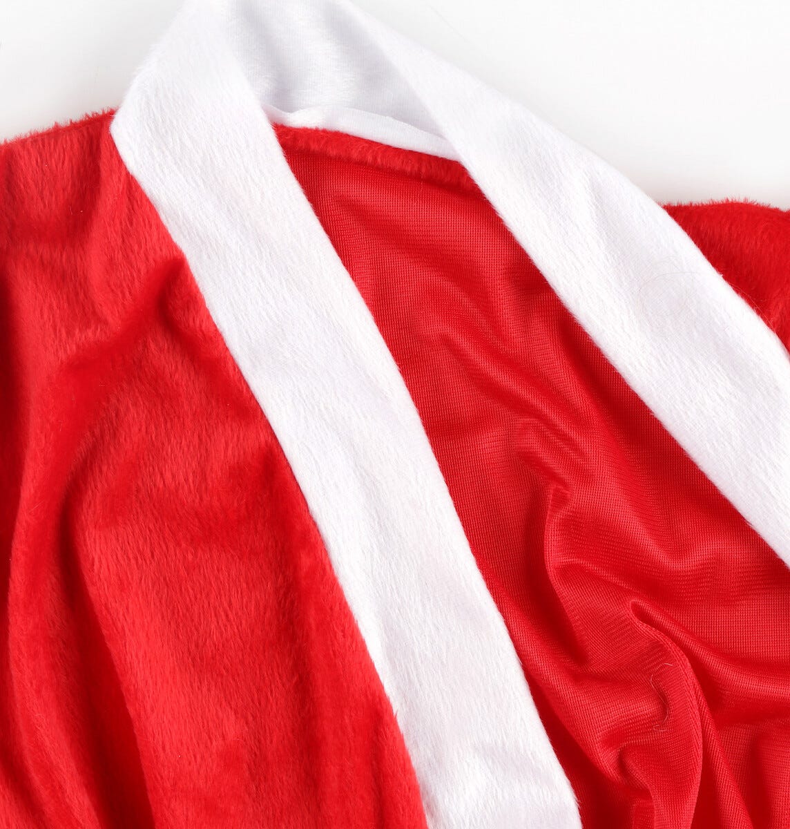 • Punainen joulupukin asu plyysikangasta – Oeko-Tex-merkitty turvallinen tekstiili.