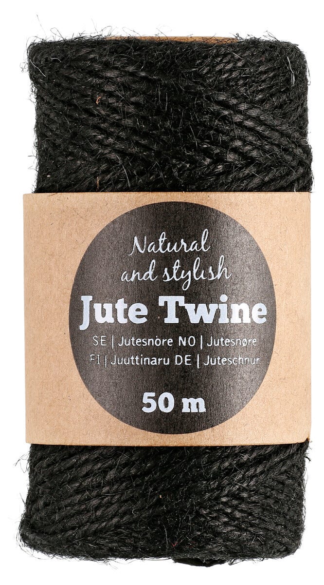 • 50 metrin rulla kierrettyä ja värjättyä juuttinarua.