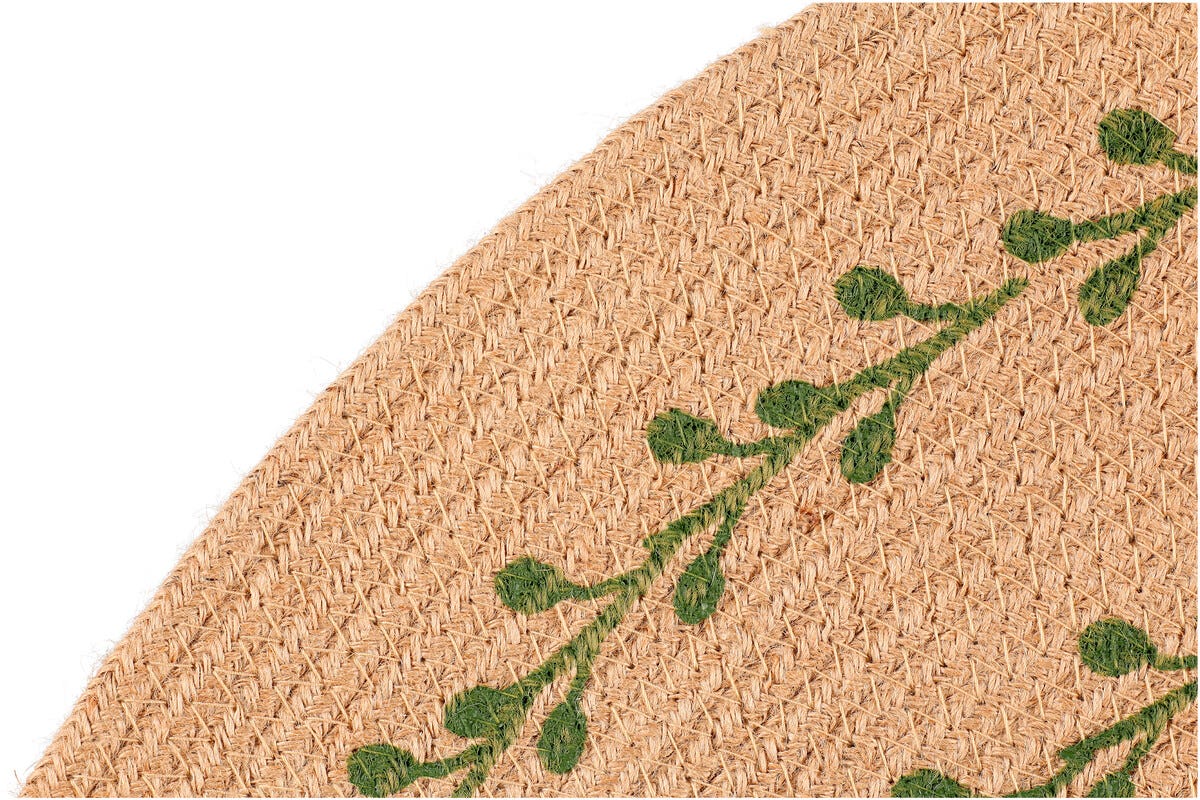 • Pyöreä matto kudottua hamppua, joka on luonnonmateriaali.