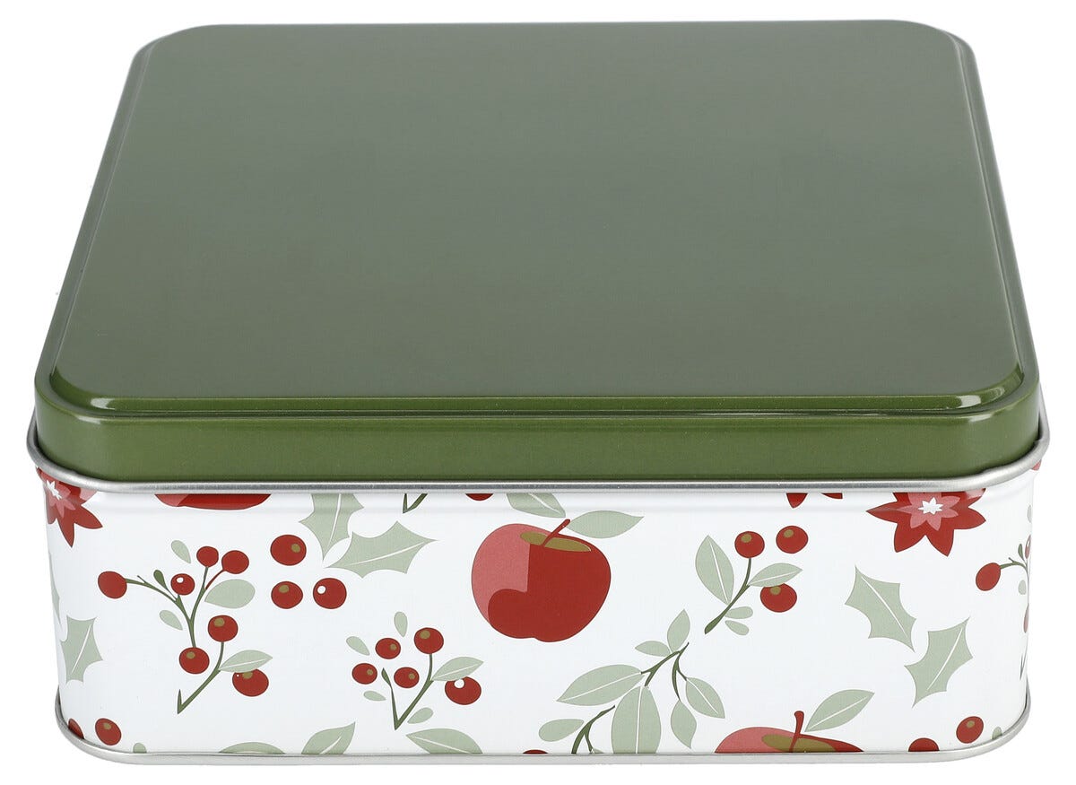 • Pieni vihreäkantinen keksipurkki: 14,9 x 14,9 x 6 cm.