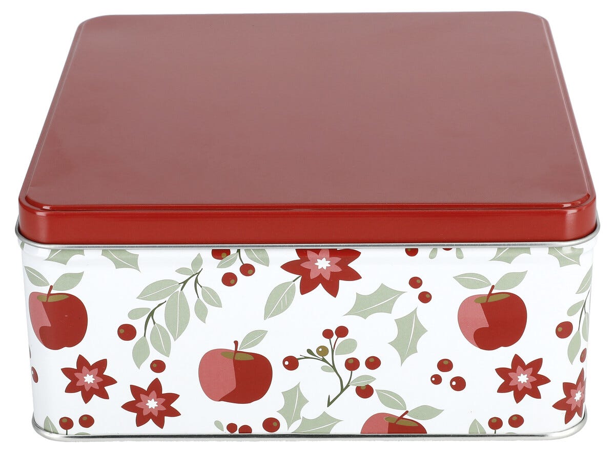 • Iso punakantinen keksipurkki: 17 x 17 x 7,5 cm.