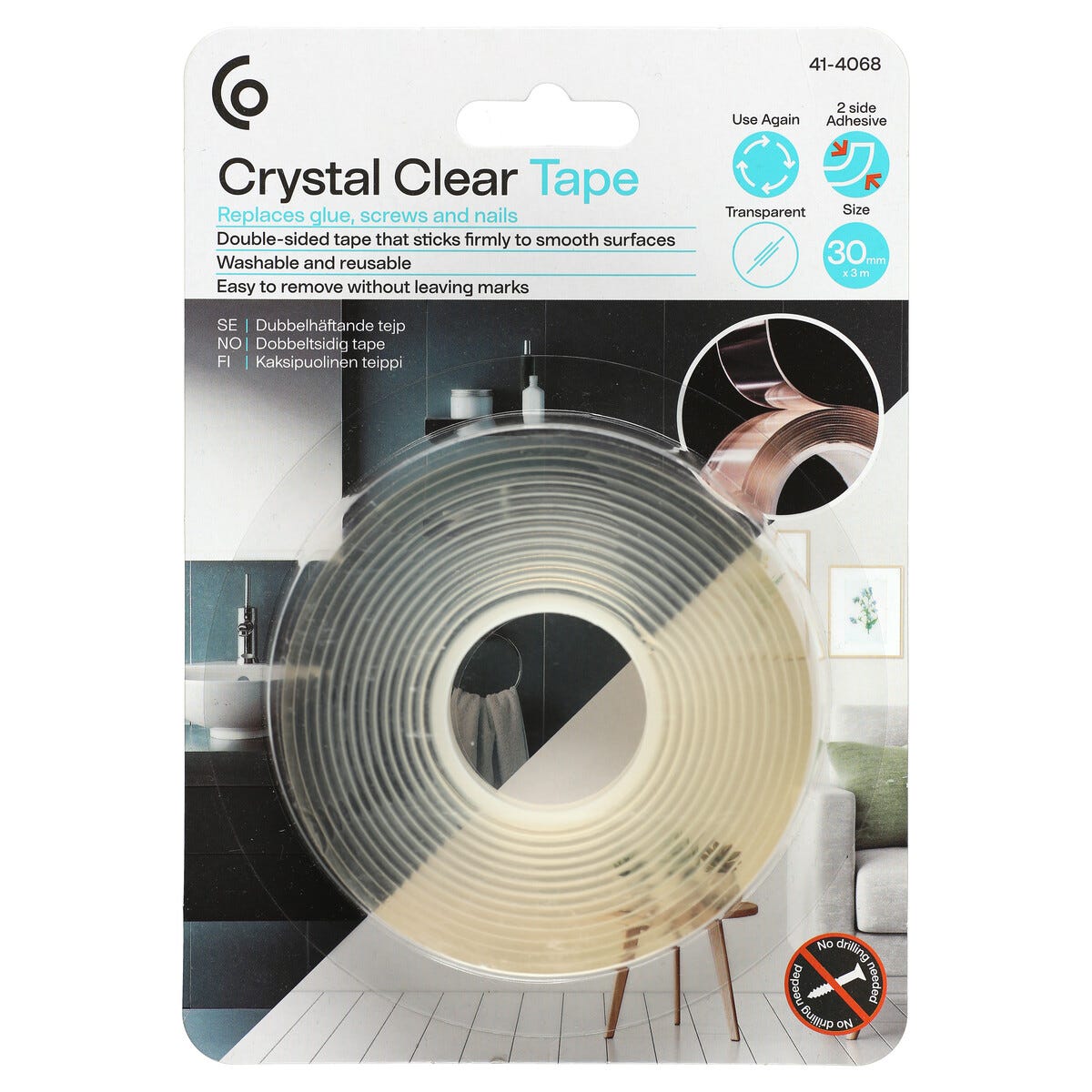 • Mitat: 30 mm x 3 metriä. Väri: Läpinäkyvä.
