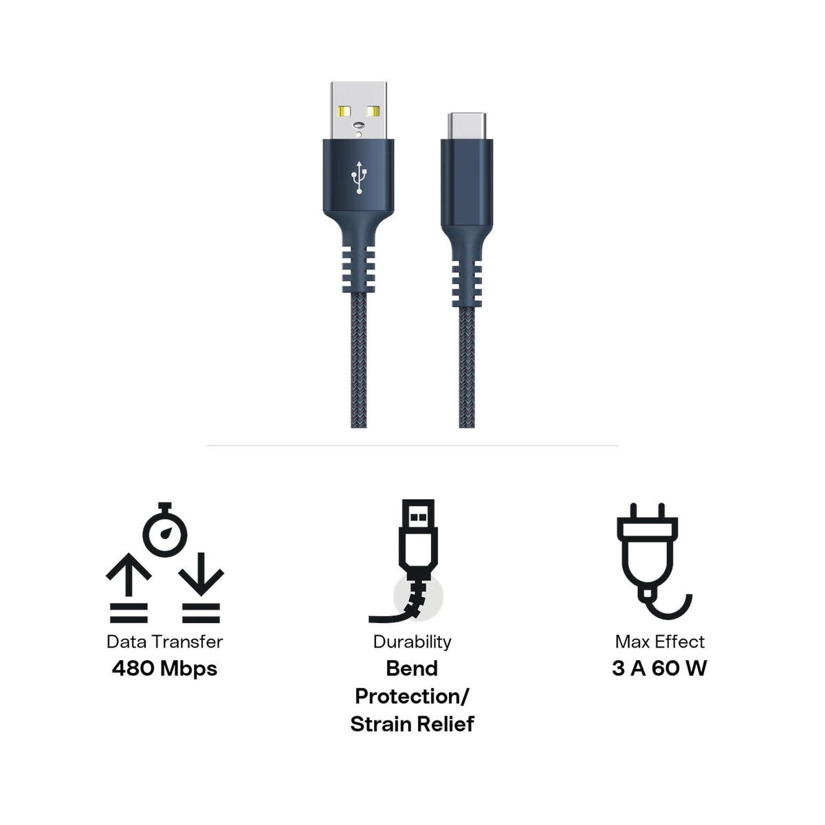 Kangaspäällysteinen USB-C-kaapeli 1,5 m, USB-A–USB-C Clas Ohlson