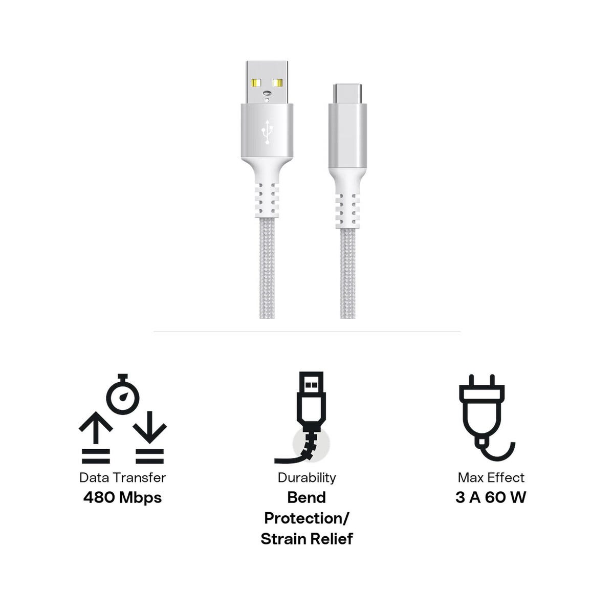 Kangaspäällysteinen USB-C-kaapeli 3 m, USB-A–USB-C Clas Ohlson