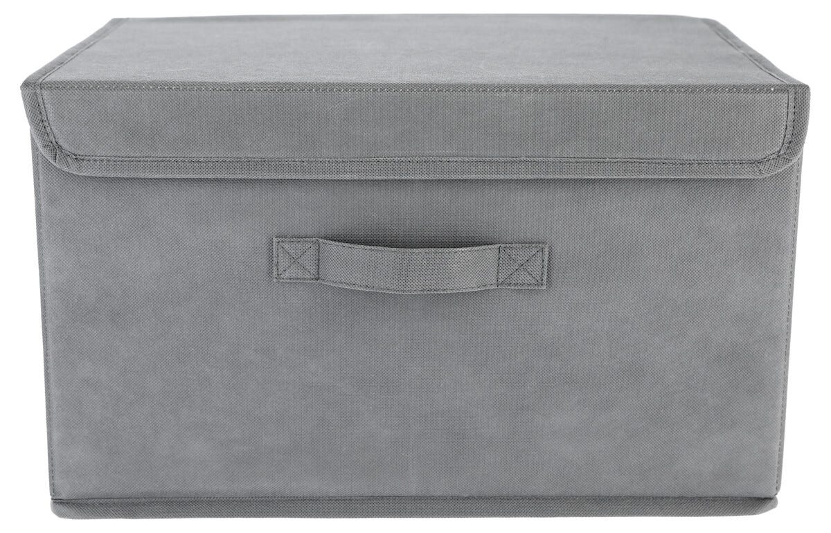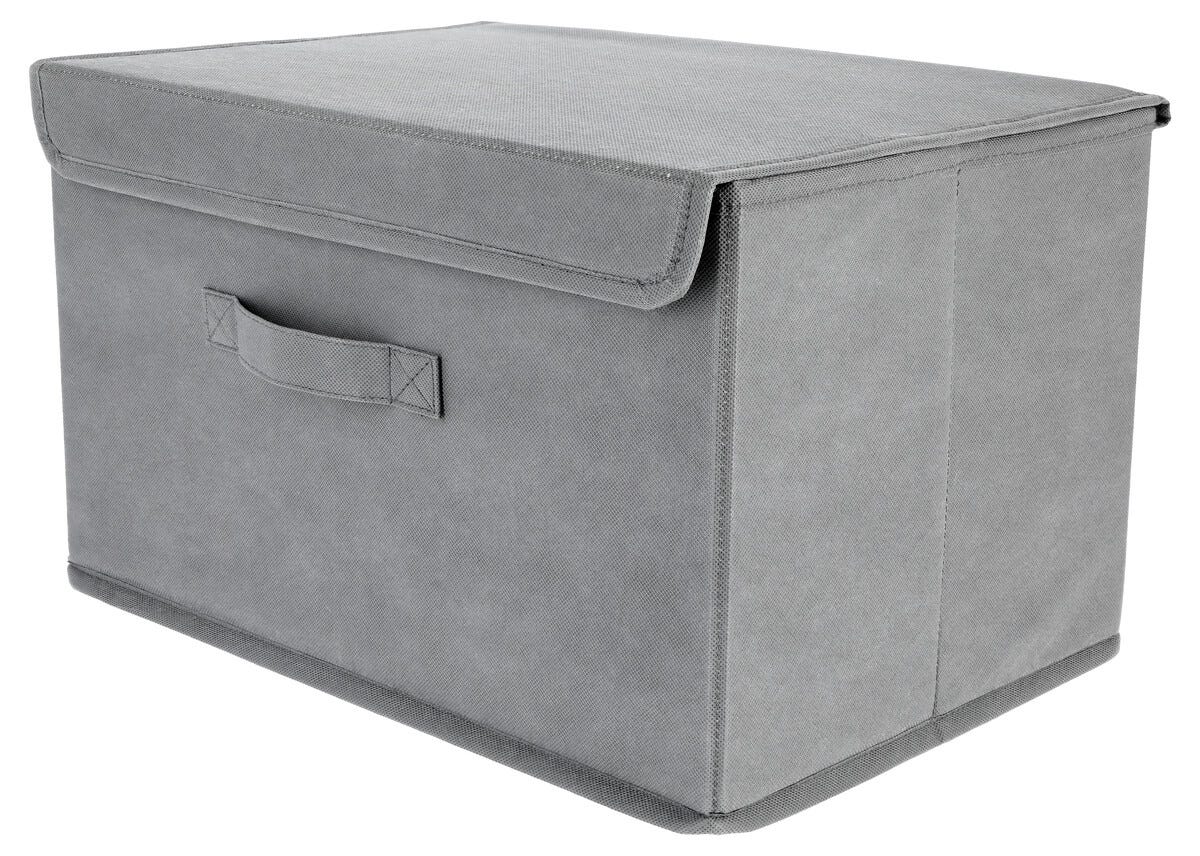 Kannellinen säilytyslaatikko, harmaa, kokoontaitettava