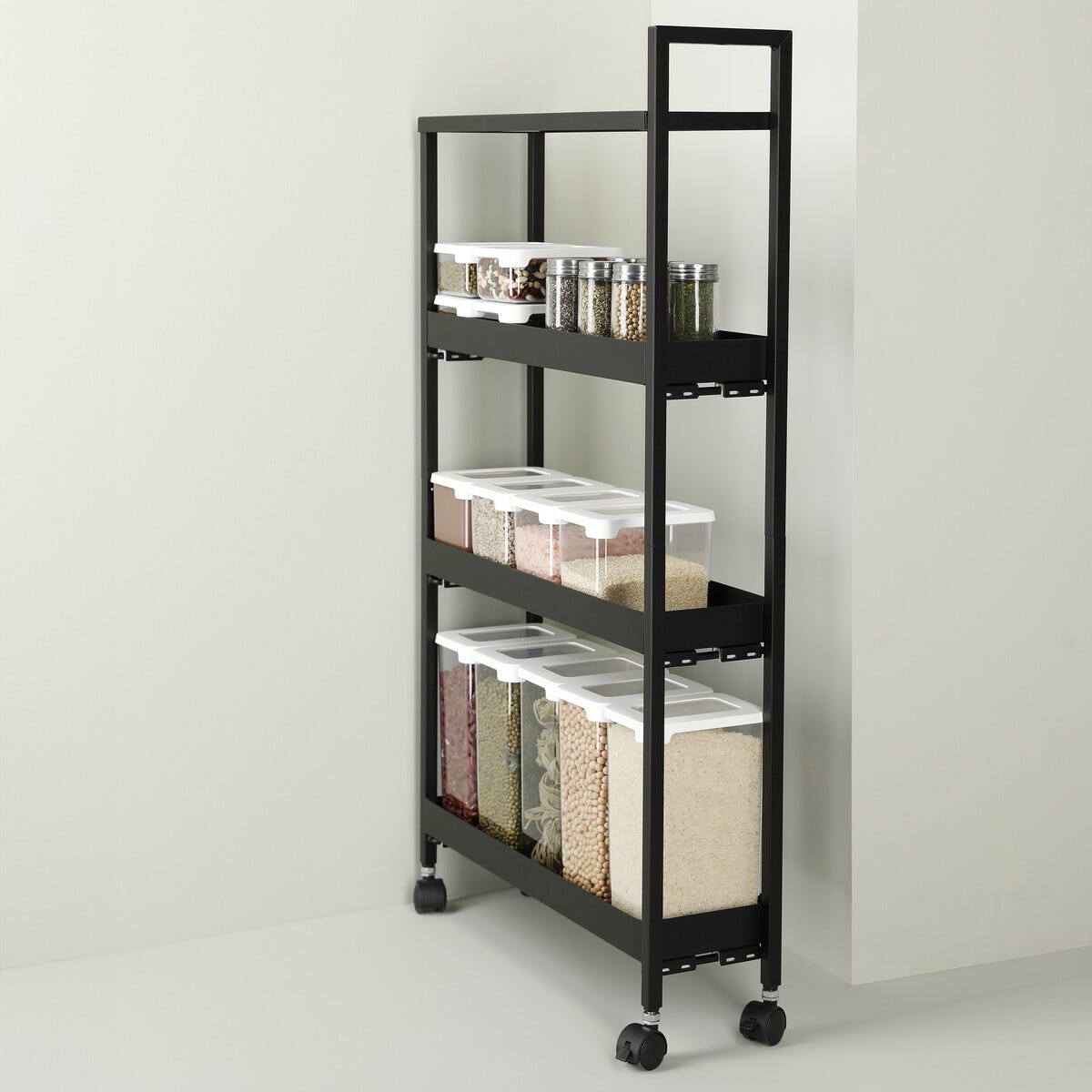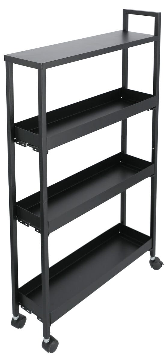 • Smal rullvagn med 4 hyllplan och 4 hjul – rulla den dit du behöver den.